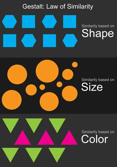 이 원칙은 사물이 서로 유사해 보일 때 우리의 시각은 그것을 함께 그룹화한다는 것입니다. 그리고 우리는 그것들이 같은 기능을 가지고 있다고 생각하는 경향이 갖습니다.