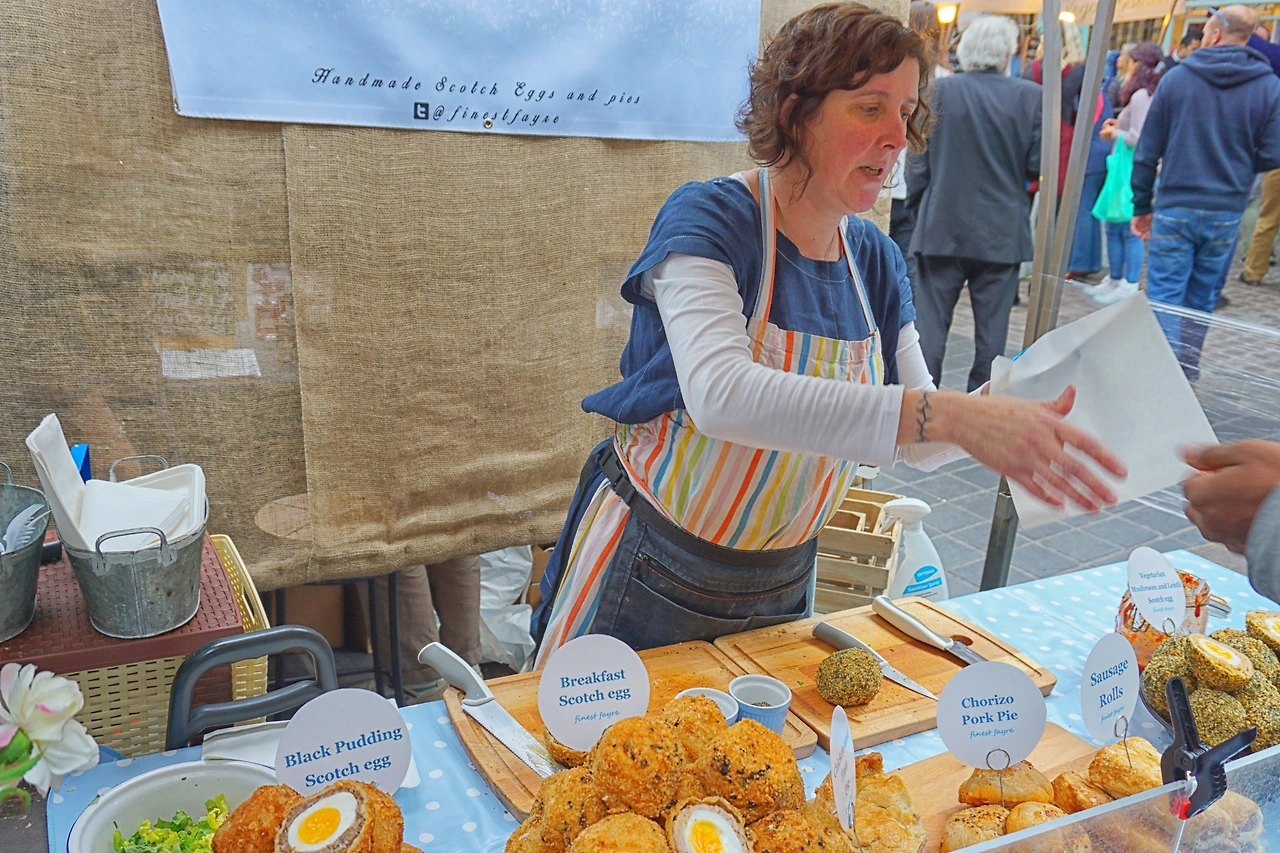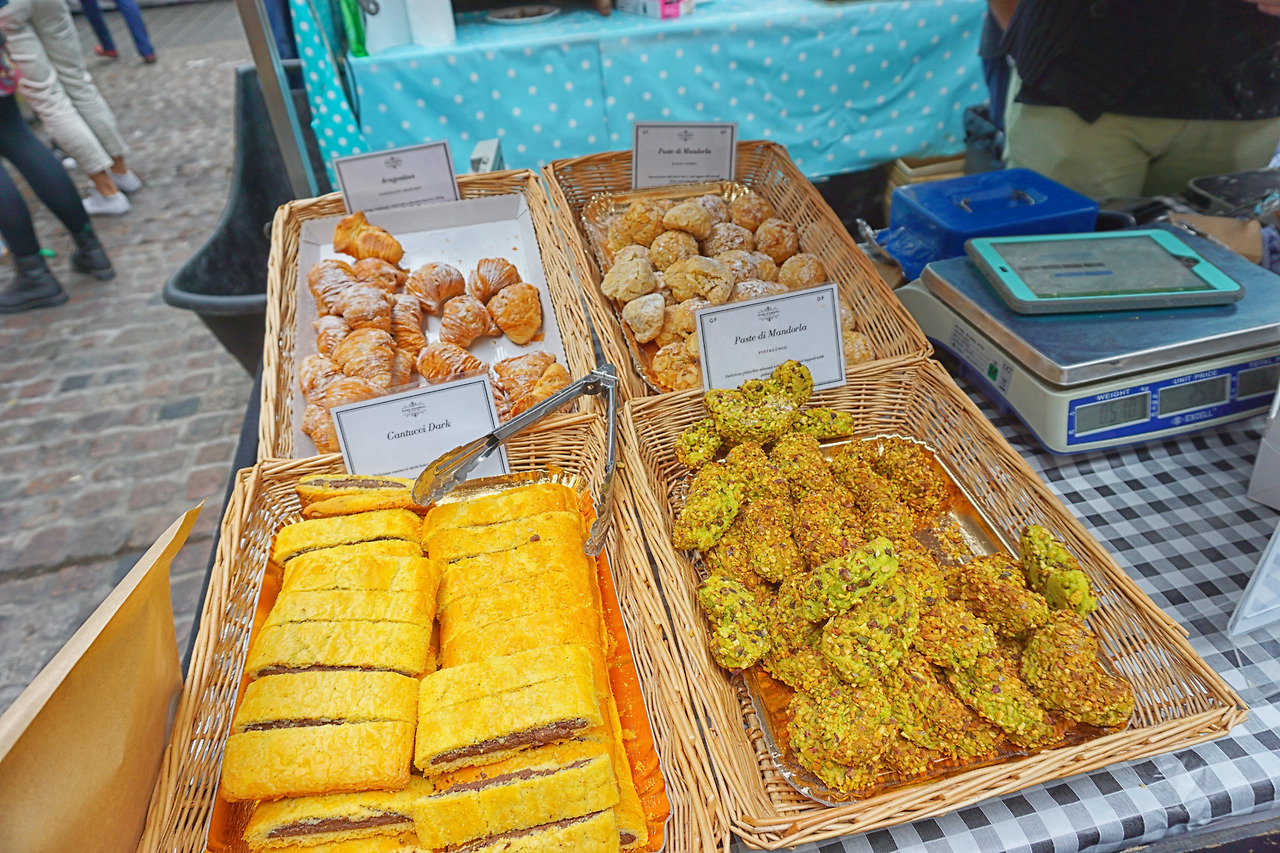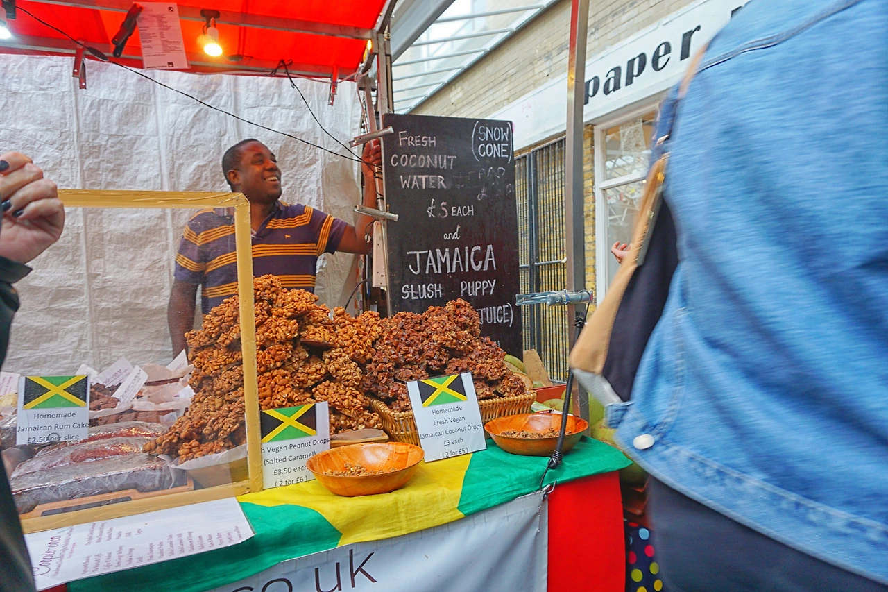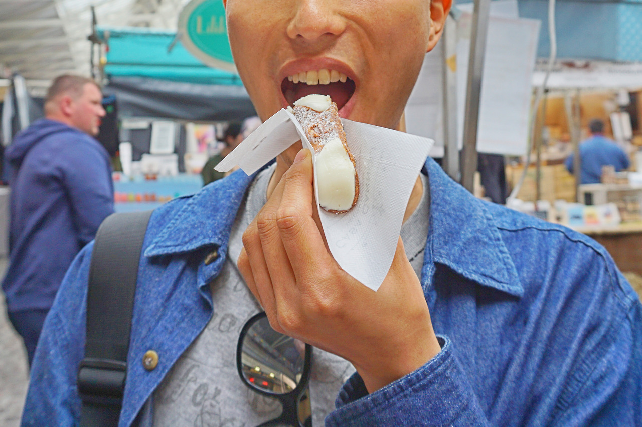 마켓의 꽃은 역시 뭐니 뭐니 해도 음식 코너다. 마켓의 약 4분의 1 정도 공간이 다양한 음식들로 가득했고, 사람들로 북적이고 있었다. 일종의 반찬가게부터 간단한 요기를 할 수 있는 푸드트럭, 포장해갈 수 있는 영국 전통 음식들, 특히나 다채로운 디저트 메뉴들을 보며 우리들은 입맛을 다셨다. 하지만 친절한 사장님들만큼 가격은 우리에게 친절하지 않았다. 원하는 만큼 맛볼 수 없다는 현실의 벽 앞에서 보람은 일생일대의 선택을 앞둔 듯 고민했다. 결국 우리 두 손에 쥔 것은 정확한 이름은 기억나지 않는 슈크림빵과 커피 한 잔. 그 디저트는 영국의 Boring함을 닮지 않아 매우 달았기에 커피와 아주 잘 어울렸다.