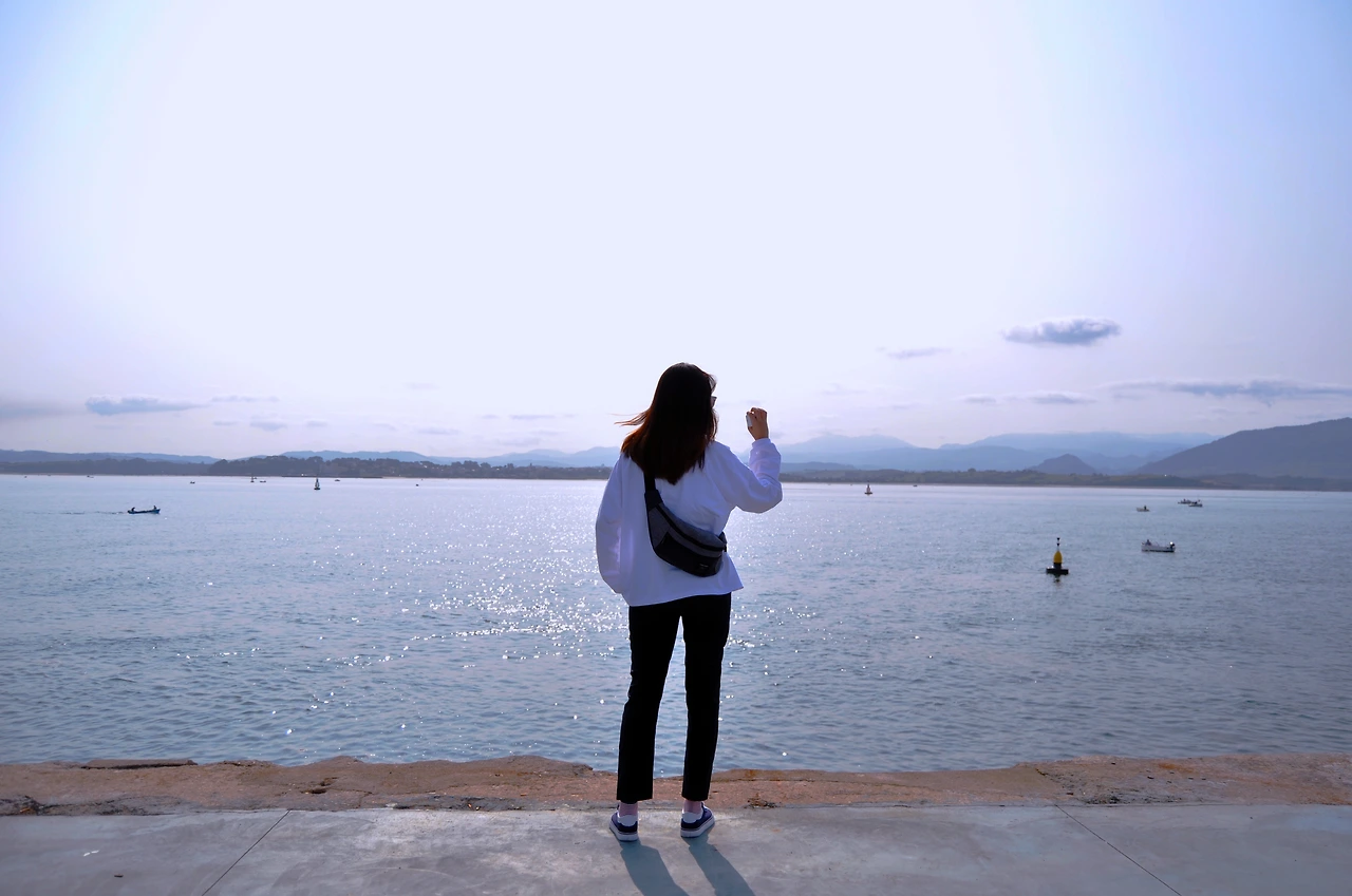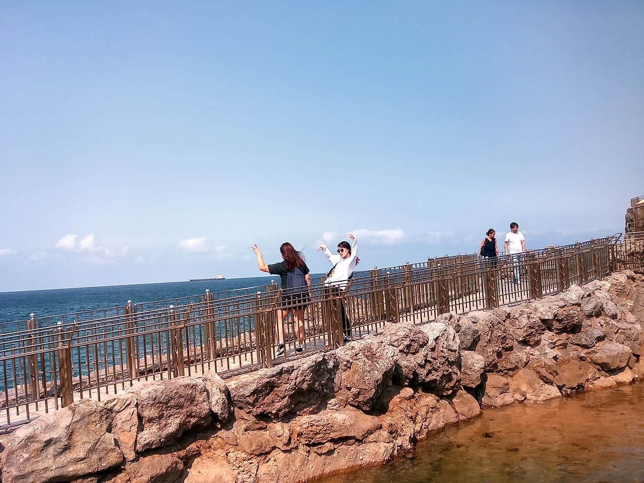 터미널에서 나오자마자 맑은 하늘 아래 반짝이는 바다가 보이는, 해안선을 따라 쭉 뻗은 길이 보인다. 자전거도 사람들도 차들도 많이 다닌다. 어디로 가볼지 나름 정하긴 했지만 곳곳에서 사진을 찍으며 바닷길을 따라 걸어보았다.