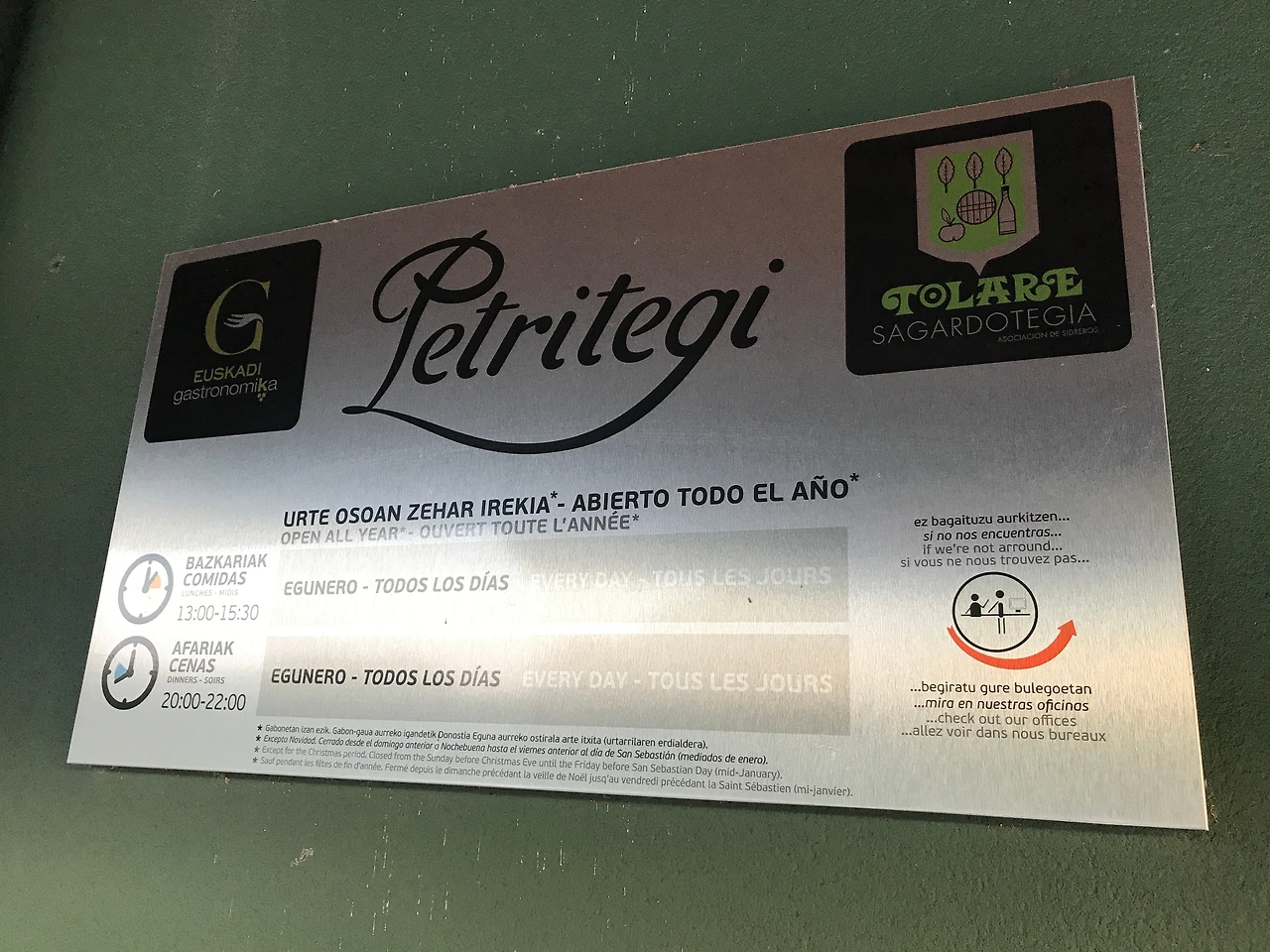 시내에서 조금 벗어난 산 중턱에 자리한 Petritegi(페트리테기). 뒤편에는 사과주 공장도 함께 운영하고 있는 바스크 전통식당 겸 양조장이다.