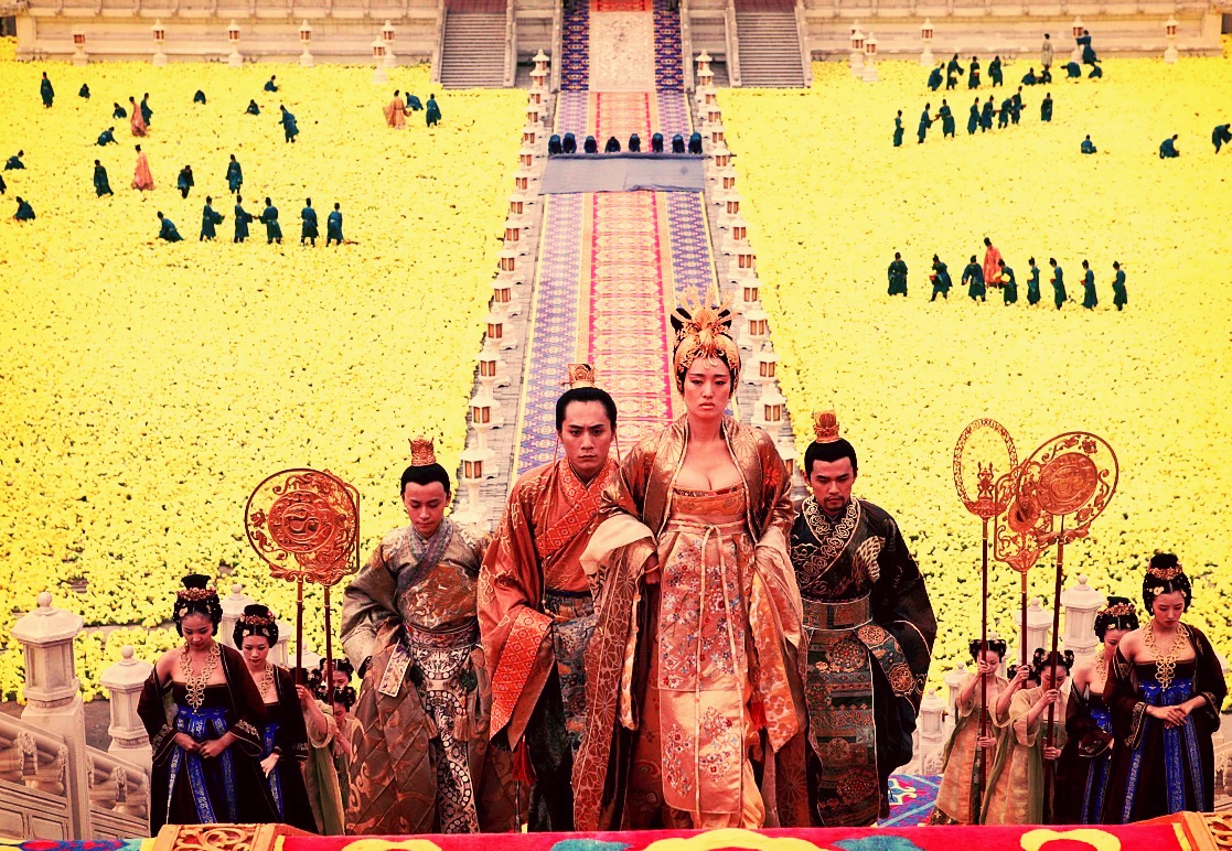 장예모 감독 2006년 작품 중국영화 ‘황후花’. 찬란한 달빛을 등지고 국화로 수놓은 황금 갑옷을 입은 십만의 병사들이 황제를 향해 칼을 겨눈다.