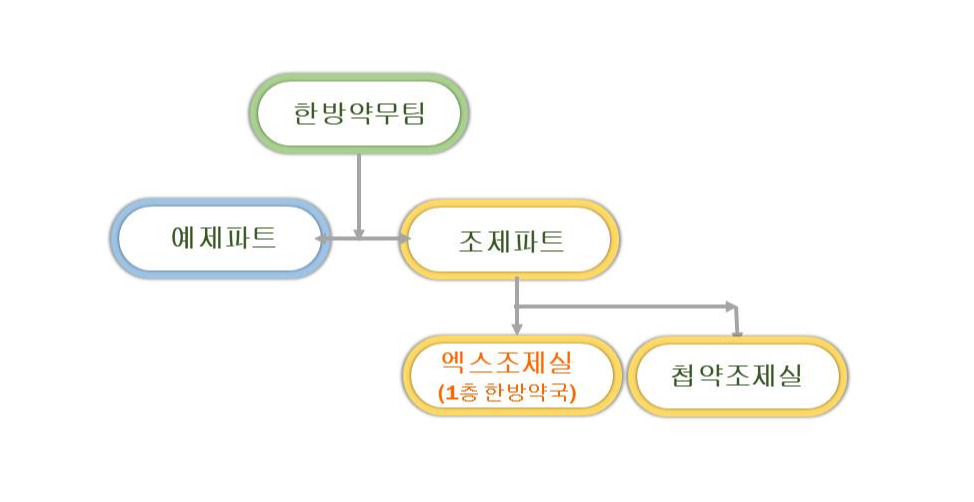 내가 속한 대학병원 본원에는 약제본부와 한방약무팀이 있고 약학대학에서 한약을 전공한 한약사는 약무직으로 입사하는데, 조제파트(첩약을 탕전하고 환약, 가루약을 조제하며 환자에게 직접 투약하는 파트)/예제파트(조제에 앞서 한약재의 검수 및 유효성분을 정량분석 하는 파트)로 나뉜 조직에서 나는 세 번의 입사 지원 끝에 조제파트 중 엑스조제실=원내 1층 한방약국에서 근무를 시작했다.