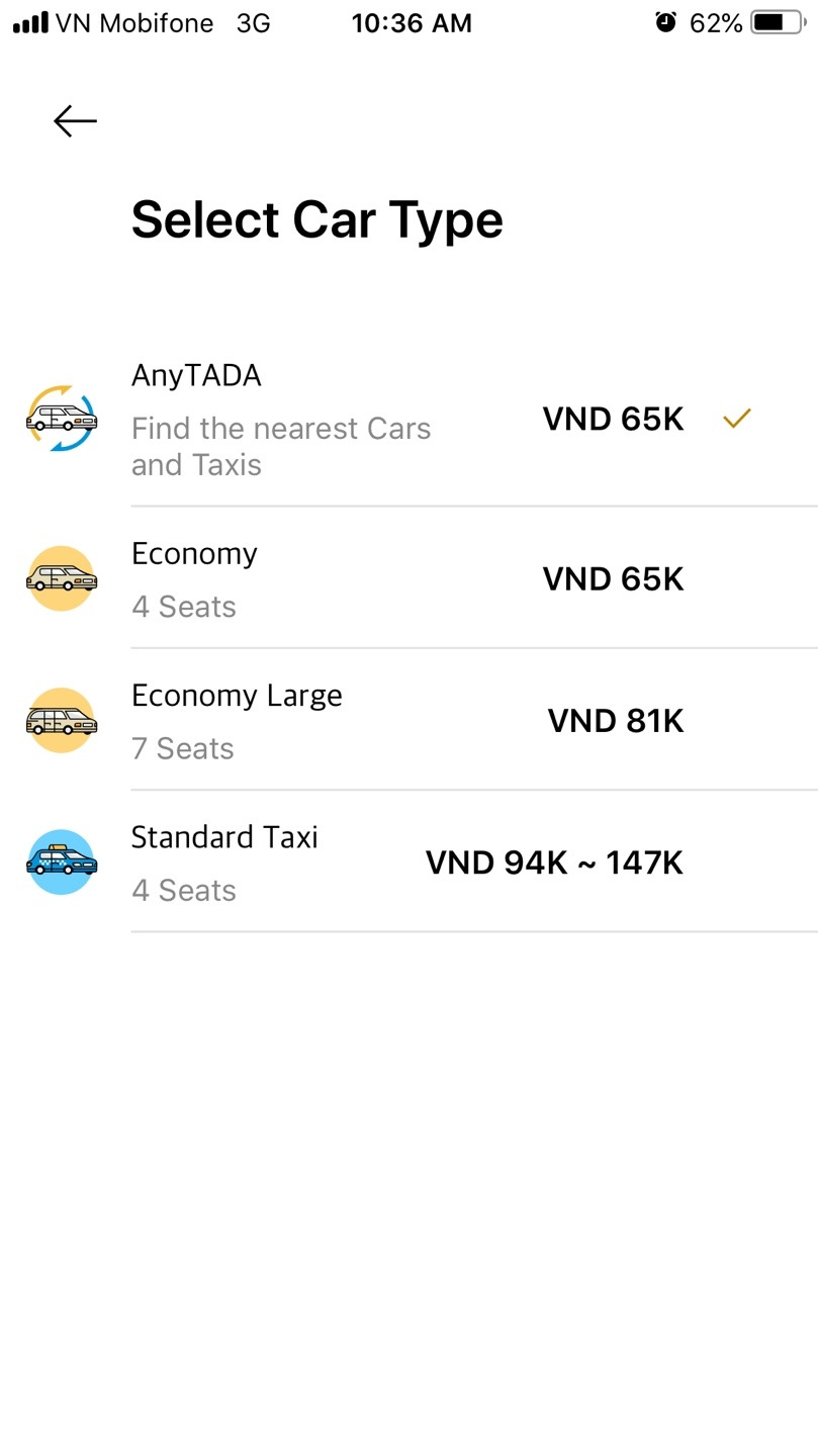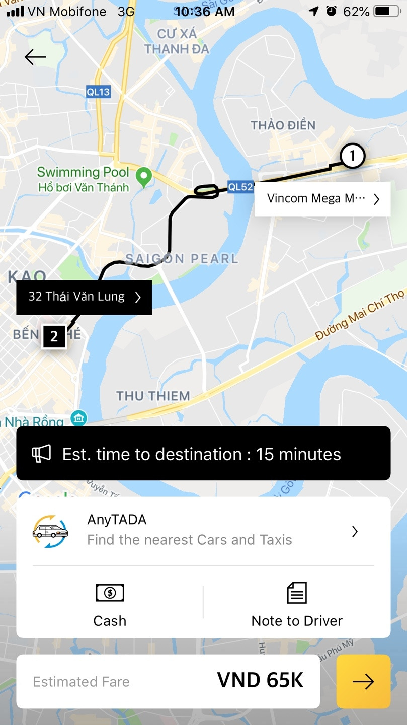 TADA는 다른 어플과 큰 차이점을 발견하지 못했습니다. 가격이 조금 더 저렴한 것 외에는 아직까지 매칭 시간도 너무 길고, 차량의 수도 부족했습니다. 기존에 잘 쓰고 있는 그랩을 대신해 사용할 만큼의 매력은 못 느꼈습니다. 아직 론칭한 지 한 달 정도밖에 되지 않았지만 그랩보다 불편하다면 굳이 고객들이 이동하지 않을 것 같습니다. 앞으로 더 발전된 TADA가 되어 그랩과 선의의 경쟁을 했으면 좋겠습니다.