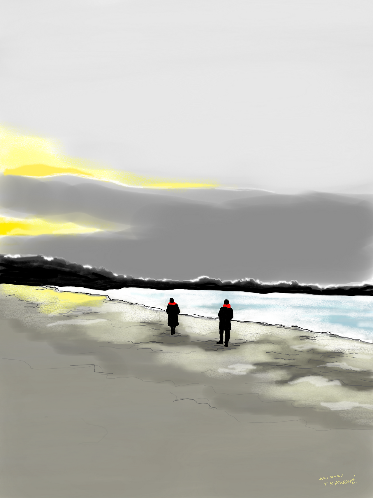 두 번 다시 볼 수 없는 <너>를 찾아 헤매는 동안 차츰 그 변함없는 세상은 나에게 손짓을 했고, 나는 밀물과 썰물에 유혹된 듯 서서히 마음을 적셨다. 다시 숨을 들이마시고 세상을 바라본다. 그럼에도 사라지지 않은 고통은 내 의지를 개의치 않는다. 잔류한 고통은 불현듯 나타나 덤덤하려 노력하는 나를 계속 찌른다. 그리고 고통은 나에게 말한다. “피할 수 없다.”라고.