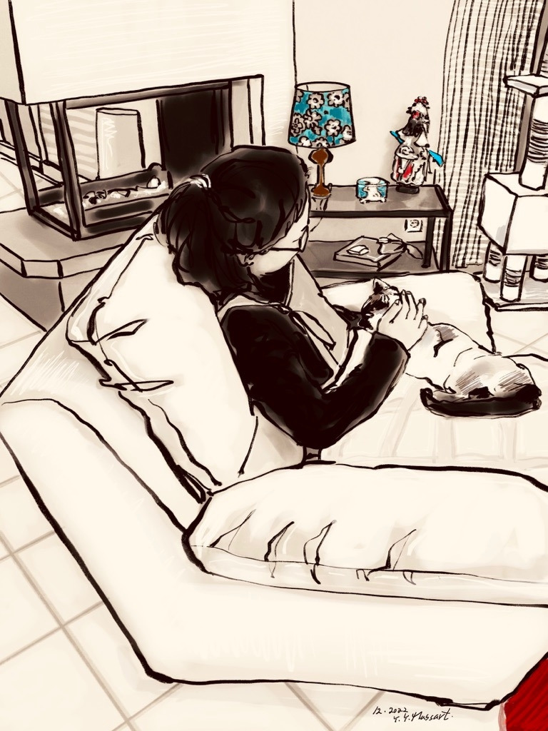 고양이를 무릎에 앉히고 쓰담쓰담. 이렇게 이별을 준비하고 있어요. 핼러윈이 죽는다는 것은 슬프지만 이렇게 사랑을 듬뿍 줄 수 있는 시간이 있어서 정말 다행이에요. 이 시간의 소중함과 감사함을 잘 알고 있답니다.