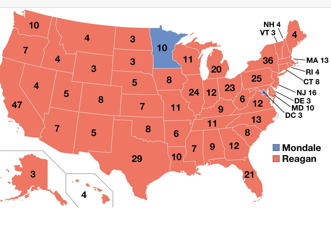 트럼프 대통령이 물러난다. 트럼프는 예상과 달리 놀라운 득표력을 보여주었다. ‘그의 득표력은 그의 정치 경력이 여기서 끝나지 않을 것임을 시사한다.’ 정반대 해석도 가능하다. ‘현직 대통령이란 것을 감안하면 매우 저조한 득표력이다.’ 미국 공화당 대통령 중에는 로날드 레이건이 있었다. 하도 오래되어서 혹자는 도날드 레이건으로 기억한다. 레이건이 1984년 재선 당시에 거의 모든 주에서 승리했다. 상대 후보의 고향인 미네소타와 워싱턴 DC를 제외하고 말이다. 레이건이 퇴임할 당시 지지율은 68%에 달했다.