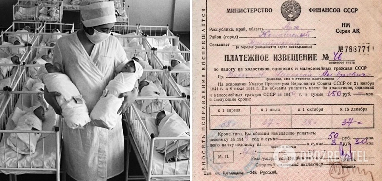 소련 시기 아이가 없는 가정은 최대 150 루블까지 세금을 냈고, 아이가 한 명 있는 가정은 50 루블, 아이가 두 명 있는 가정은 25 루블까지 냈다. 아이가 세명이 있어야 징벌적 세금이 면제되었다. 이 세금은 출생율에 큰 영향을 미친 것으로 분석되며, 실제로 세금 때문에 아이를 낳았다는 가정이 많고, 불필요(?)하고 원하지 않았던(?) 경우의 출생도 많이 이뤄진 것으로 보고 있다. 오! 프라브다(진짜로)?