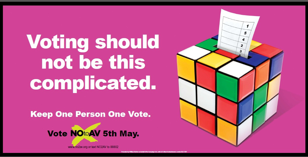 2011년에 영국에서는 소선거구제 단점을 보완하기 위한 대안투표제(Alternative Vote)가 국민투표에 붙여졌습니다. AV는 투표용지의 후보자 이름 옆에 선호도 등수를 매기는 것이다. 1번 선호도에서 50%를 넘는 후보자가 없을 경우에 꼴찌 후보자 한 명을 제외합니다. 제외된 후보의 표를 2번 선호도에 따라 남은 후보들에게 재배분하는 방식입니다. 이런 식으로 꼴찌 후보자를 한 명씩 제외하면서 50% 득표자가 나타나면 당선자가 나옵니다. 국민투표에서 AV제도는 반대 68%, 찬성 32%의 압도적인 차이로 부결되었다. 복잡한 것은 싫다는 겁니다. 조금만 따지고 보면 복잡할 것도 없습니다. 영국 사람들 머리가 나쁜가요? 2011년 국민투표는 ‘선거는 복잡해서는 안된다.'는 교훈을 남겼습니다.