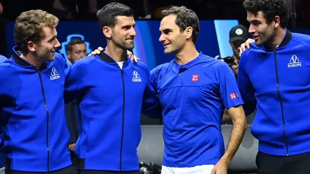 페더러와 나달은 마지막 경기에서 복식의 달인 잭 샥과 US Open에서 기량을 만개하며 우승에 근접했던 프란시스 티아포를 상대했다. 티아포는 강력한 샷을 나달과 페더러의 몸 정면을 향해 쏘았고, 연로한 두 거장은 샷을 받는데 어려움을 겪었다. 다음날 페더러와 나달을 대신하여 나선 선수는 노박 조코비치였다. 코로나 백신을 맞지 않아 미국에 갈 수가 없어서 두 달간 공식 경기에 참여한 적이 없는 조코비치는 주변의 우려를 불식하며 6-1, 6-3으로 티아포를 간단하게 제압했다. 페더러는 벤치에서 조코비치를 코치했고 필요한 것이 없냐고 물으니 조코비치는 물을 가져다 달라고 말했다. 코트의 로빈슨 크로소가 원했던 장면이 바로 이런 장면이다.