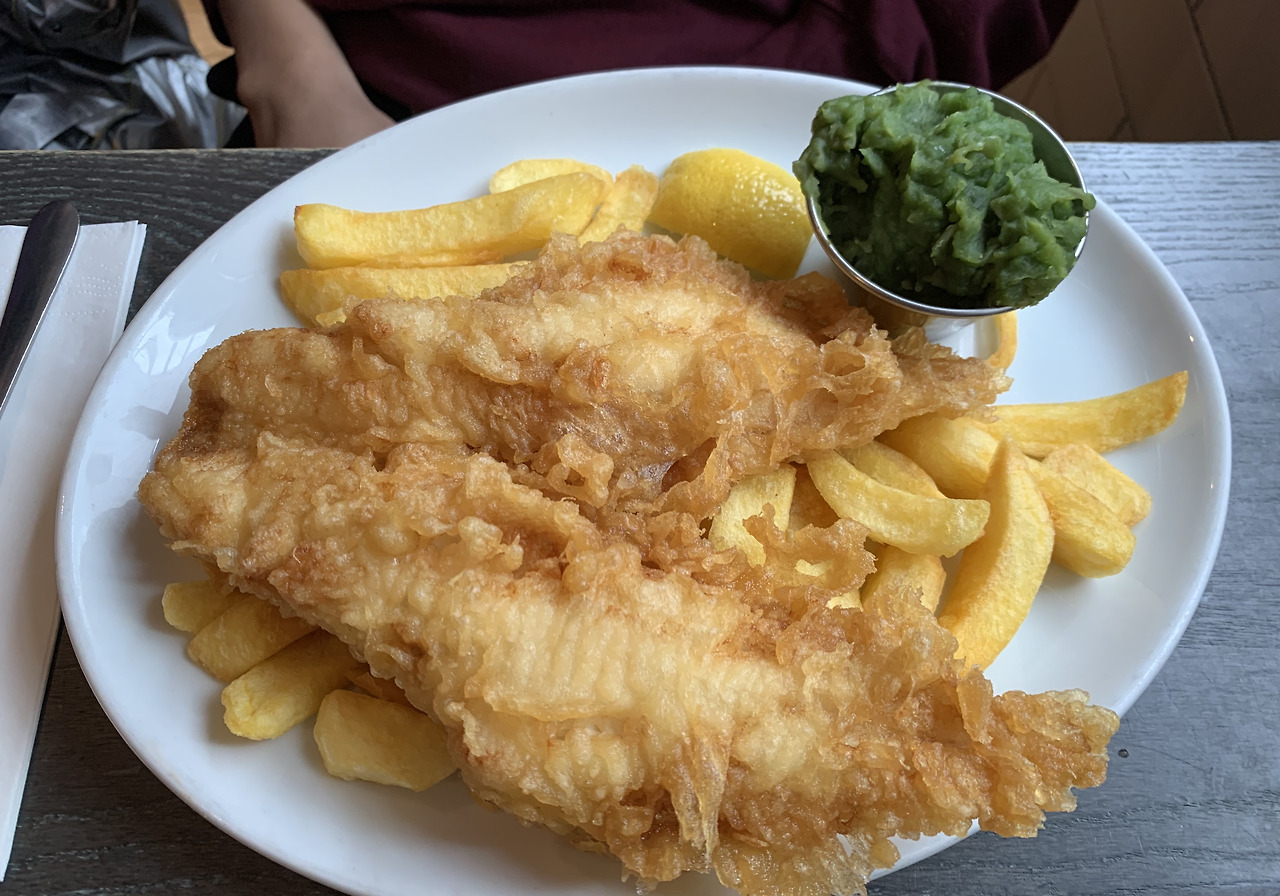 영국을 대표하는 음식인 피쉬 앤 칩스는 튀긴 대구, 감자칩, 완두콩이 같이 나오는 음식입니다. 대구를 반죽한 후에 튀기는 것이 일반적입니다. 넓은 의미로는 생선 요리와 감자칩이 같이 제공되면 모두 피쉬 앤 칩스입니다.
