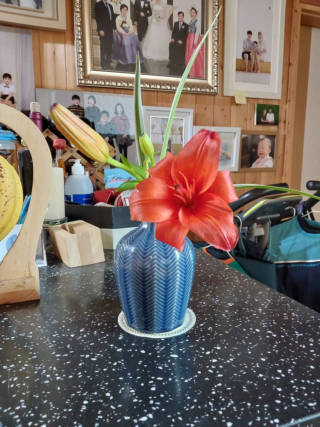 그래도 남편이 꺾어온 정성을 생각해서 다른 화병을 찾아 나리꽃을 꽂아 식탁에 올려놓았다.