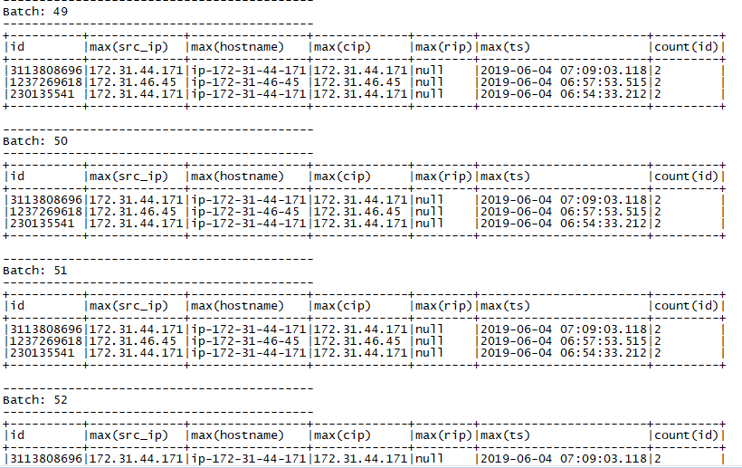 이런 식으로 Console 에 주기적으로(Near Real Time 같은 느낌...) 화면에 뿌려진다.