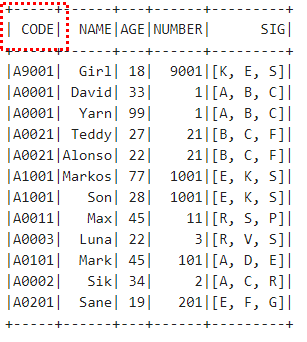 CODE 컬럼이 같은 데이터들이 하나의 Row로 나타난다.