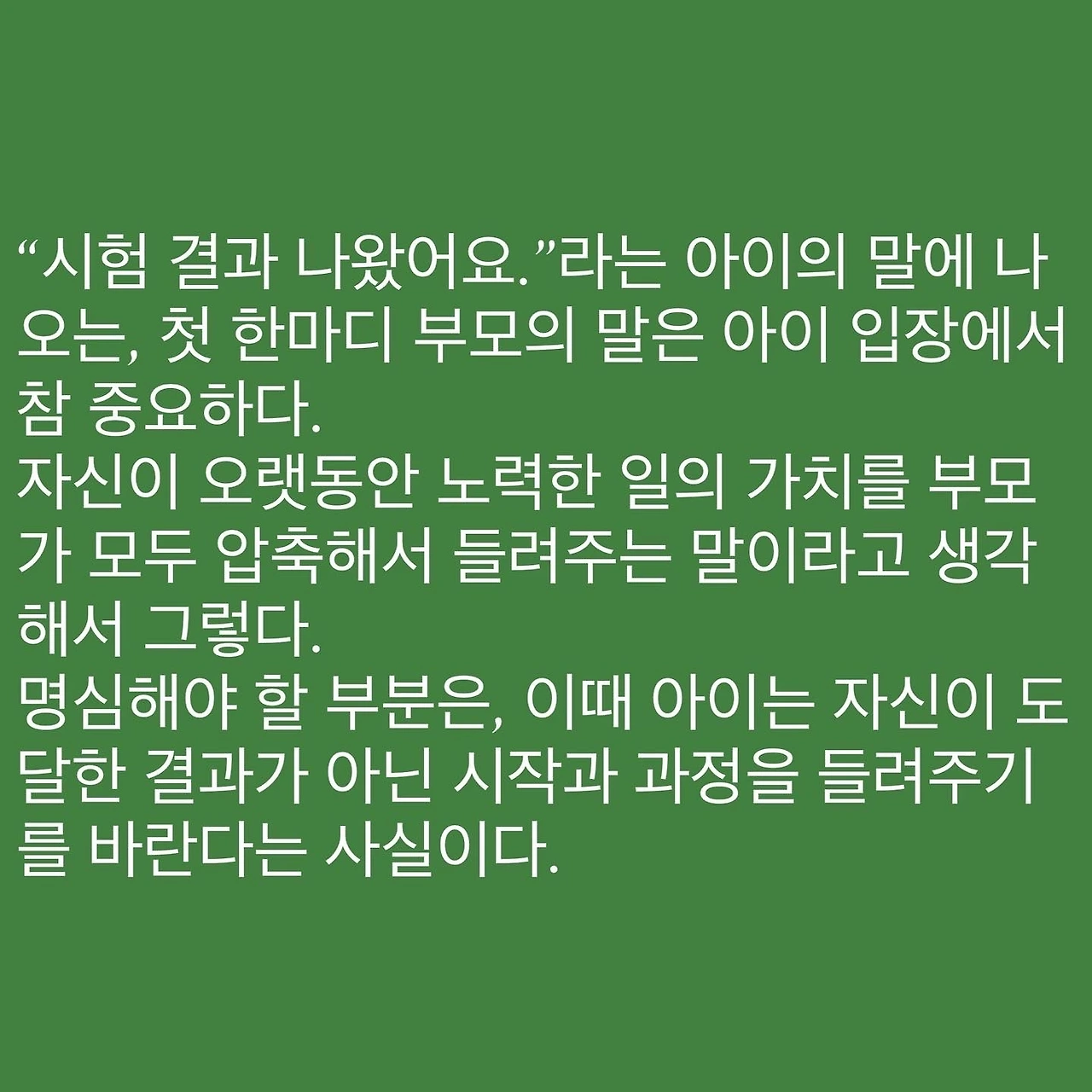 “시험 결과 나왔어요.”라는 아이의 말에 나오는, 첫 한마디 부모의 말은 아이 입장에서 참 중요하다.