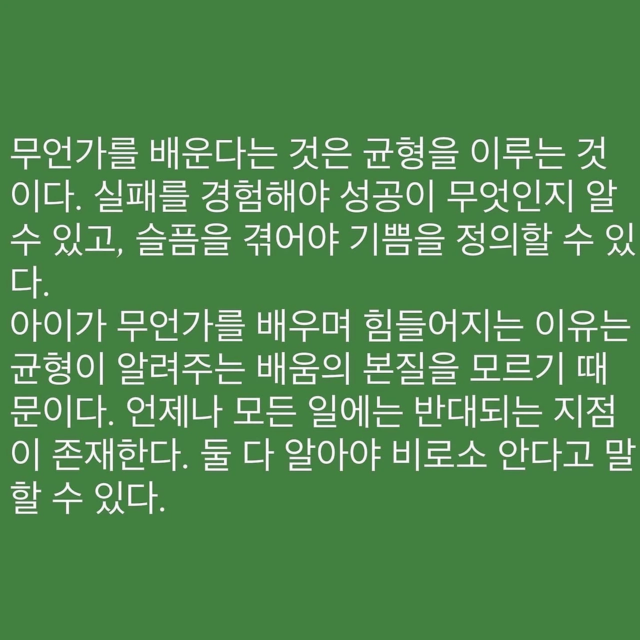 무언가를 배운다는 것은 균형을 이루는 것이다. 실패를 경험해야 성공이 무엇인지 알 수 있고, 슬픔을 겪어야 기쁨을 정의할 수 있다.