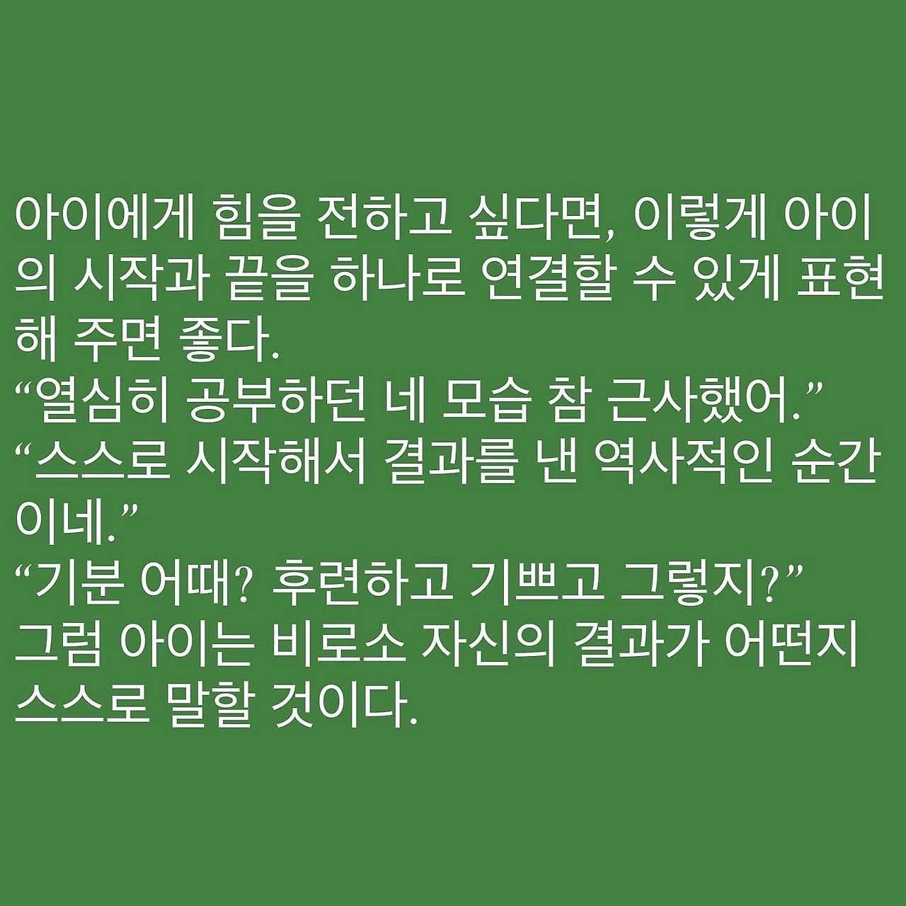 아이에게 힘을 전하고 싶다면, 이렇게 아이의 시작과 끝을 하나로 연결할 수 있게 표현해 주면 좋다.