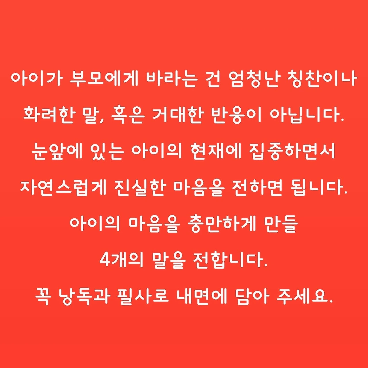 아이의 마음을 충만하게 만들 4개의 말을 전합니다.