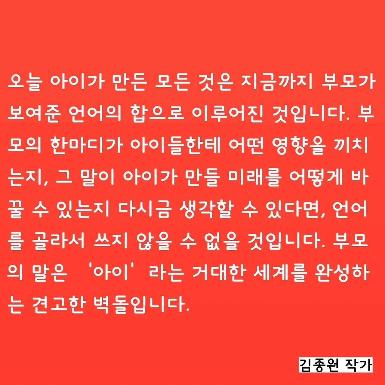 #김종원 #김종원작가 #자녀교육 #부모교육 #책육아 #홈스쿨링 #인문학 #문해력 #대화법 #용기 #희망 #좋은말 #예쁜말 #부모의언어는아이의철학이됩니다