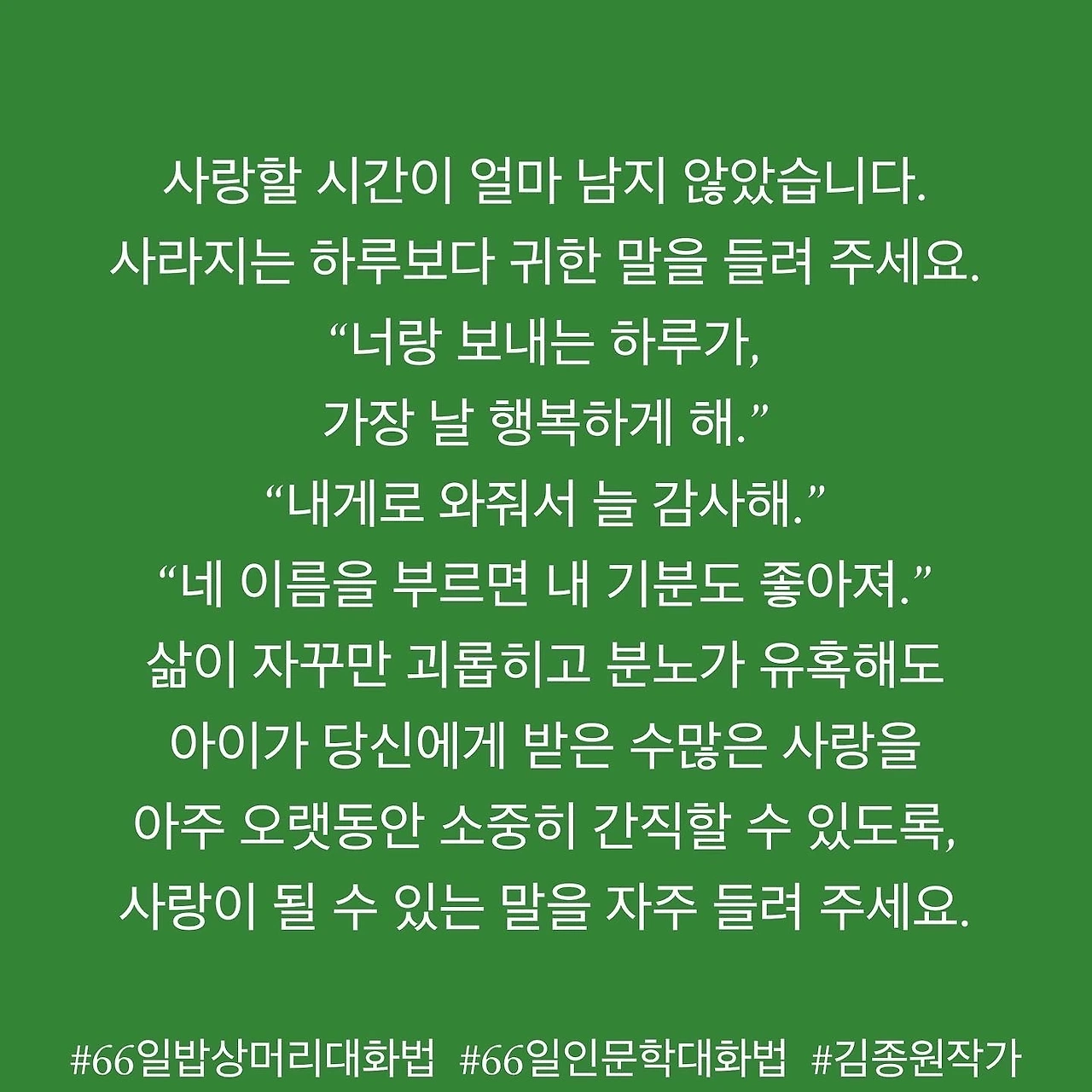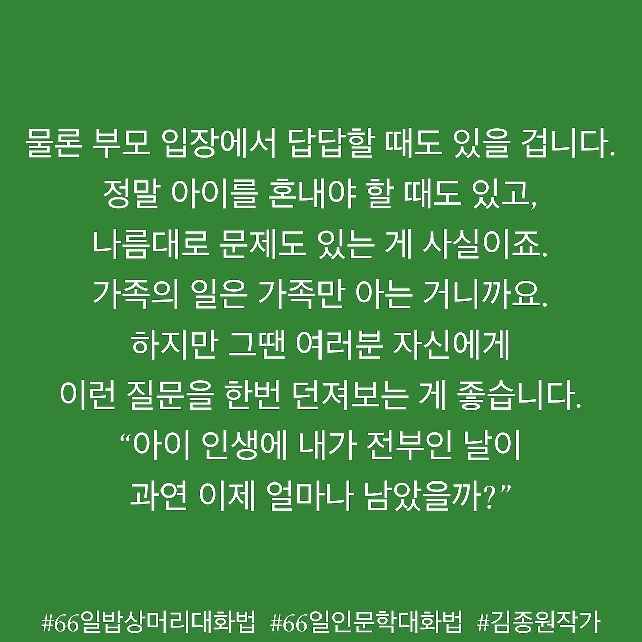 #김종원작가 #김종원 #부모 #자녀교육 #부모교육 #밥상 #밥상머리교육 #대화 #초등학생 #중학생 #육아 #육아소통 #육아스타그램 #육아일상 #부모의말 #66일밥상머리대화법 #66일인문학대화법
