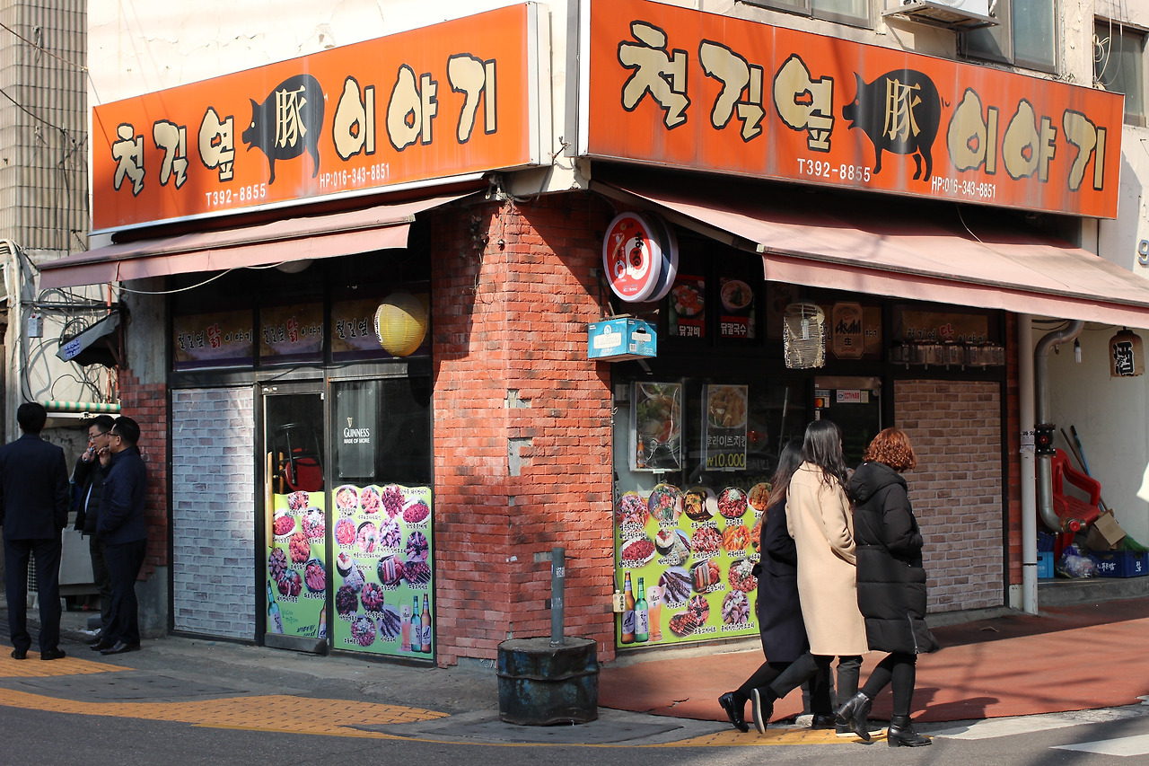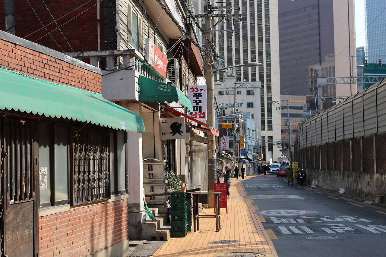 기찻길 건널목에서 차단기가 내려오며 나는 소리, '땡땡땡'. 예전부터 기찻길 옆 골목의 거리를 일명 '땡땡거리'라고 일컫었다. 음식점과 카페가 경의선 철도길을 따라 즐비해있다.