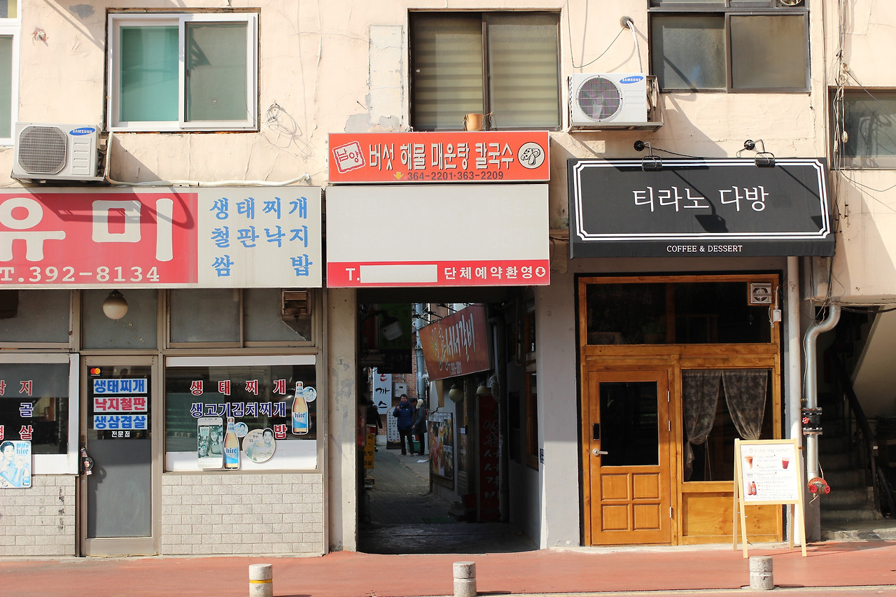 미동아파트 1층에 위치한 미동면옥. 이곳의 잔치국수 한그릇 가격은 5천원. 이토록 착한 가격은 요즘에 만나기 쉽지 않다. 잔치국수(5천원), 비빔국수(5천5백원), 만둣국(6천원) / 여름한정메뉴 콩국수