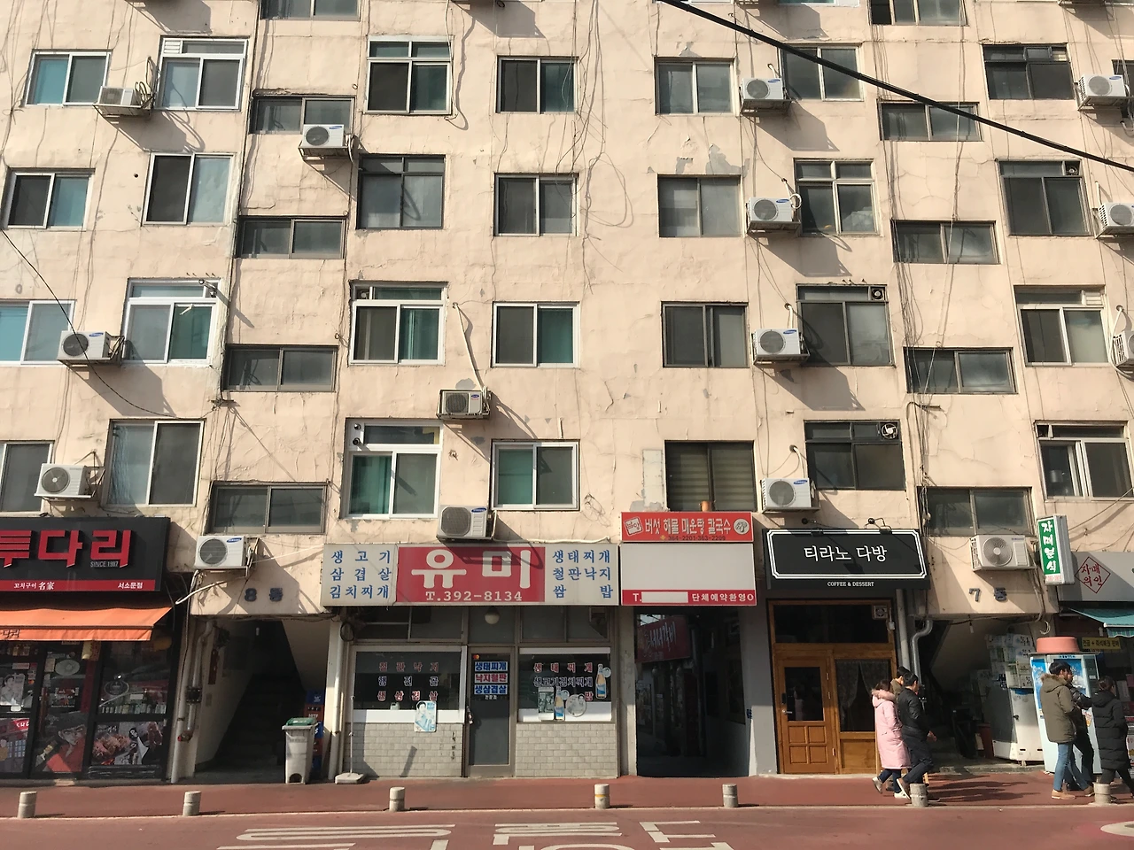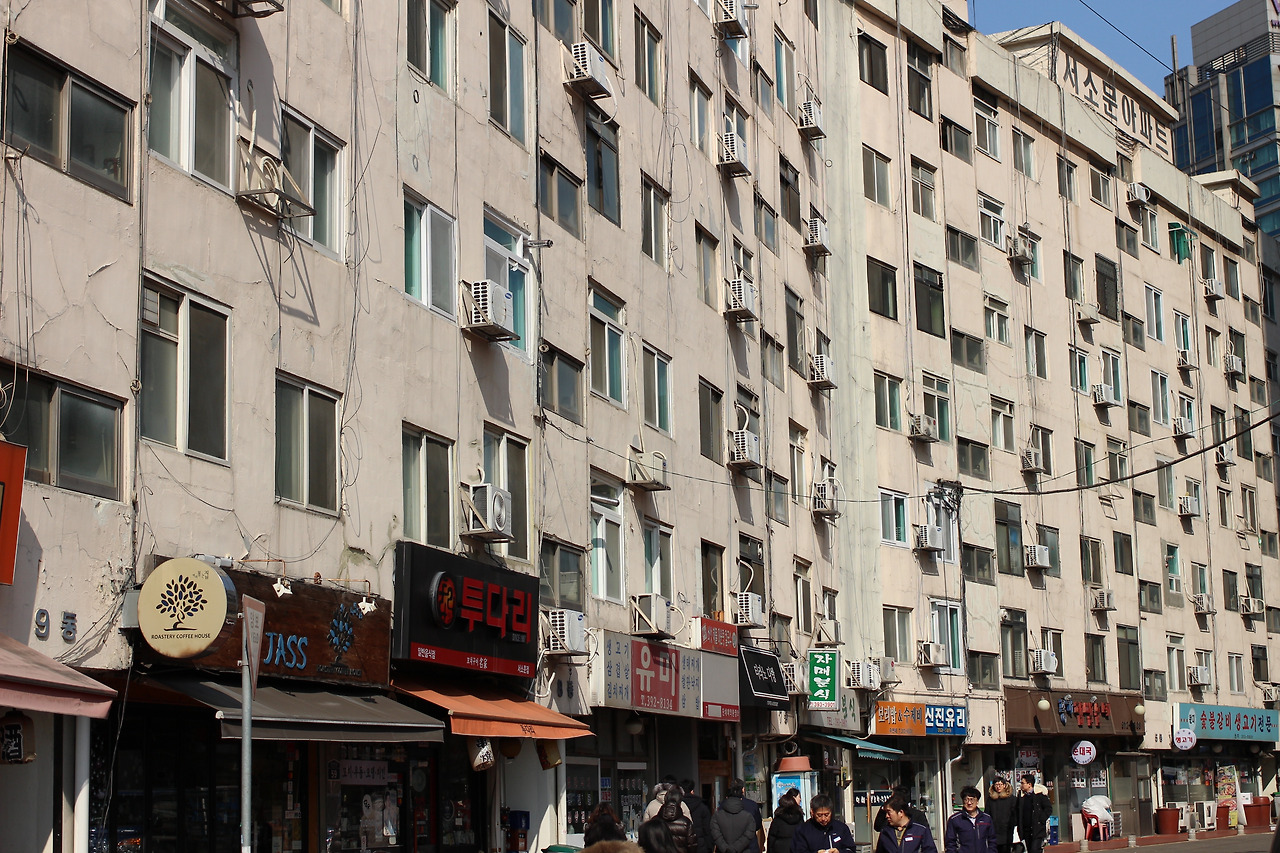 회사 근처에는 한눈에 보기에도 오래된 아파트들이 많다. 7-80년대에 지어진 주상복합형 아파트가 곳곳에 포진해있다. 주상복합형아파트는 1층 상가, 2층부터 주거공간을 의미한다.