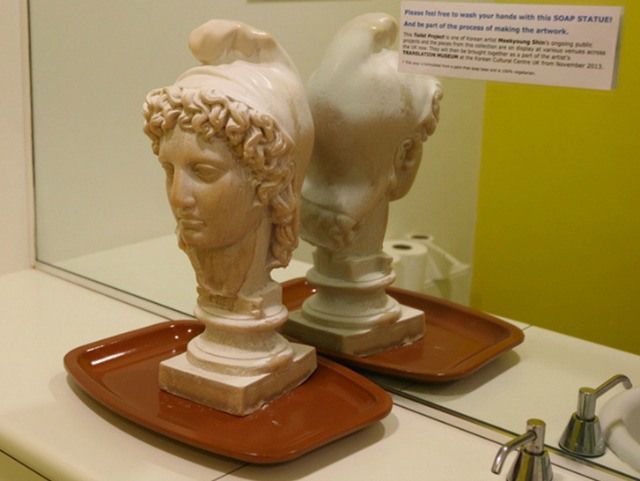 신미경은 일상에서 쉽게 소모되는 대표적인 재료 ‘비누’로 작업을 하는 작가이다. 작가는 런던과 서울을 오가며 작업을 하는데, 주로 서양 조각상, 아시아의 불상과 도자기, 나아가 폐허가 된 건축 잔해 등 특정 문화를 보여주는 대상물(오브제)을 재현한다.