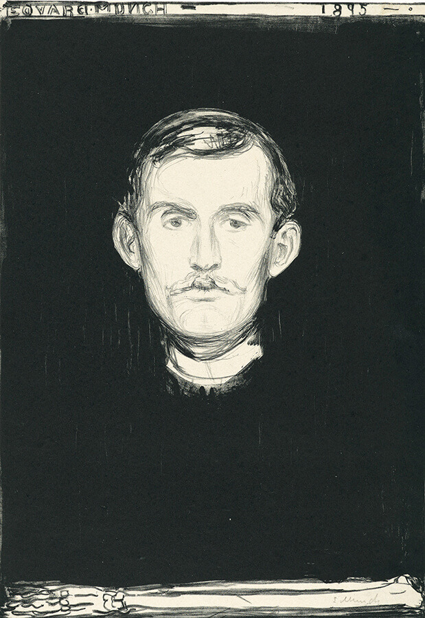 전시는 <뼈가 보이는 자화상>으로 시작된다. 뭉크는 이 작품을 그렸던 당시, 그의 나이는 불과 31세였다. 그는 마치 시체를 연상시키는 메멘토 모리(너의 죽음을 기억하라)의 상징의 하나인 뼈와 함께 자신의 얼굴을 그렸다.