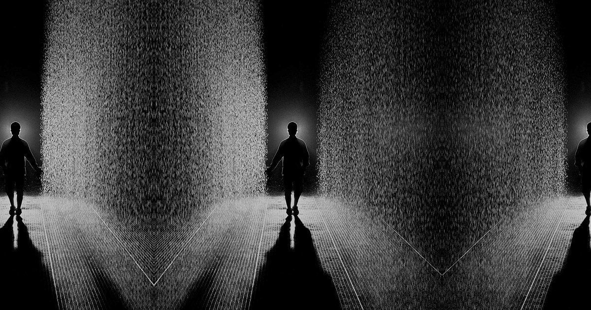 <레인 룸Rain Room>은 2012년 런던 바비칸센터 커브갤러리에서 첫 전시를 성공적으로 마치고 2013년 뉴욕 MOMA에서도 엄청난 히트를 쳤던 전시이다. 자그마한 방안에 엄청나게 쏟아지는 빗 속을 우산없이 누비는 관객들의 모습이 장관이다.