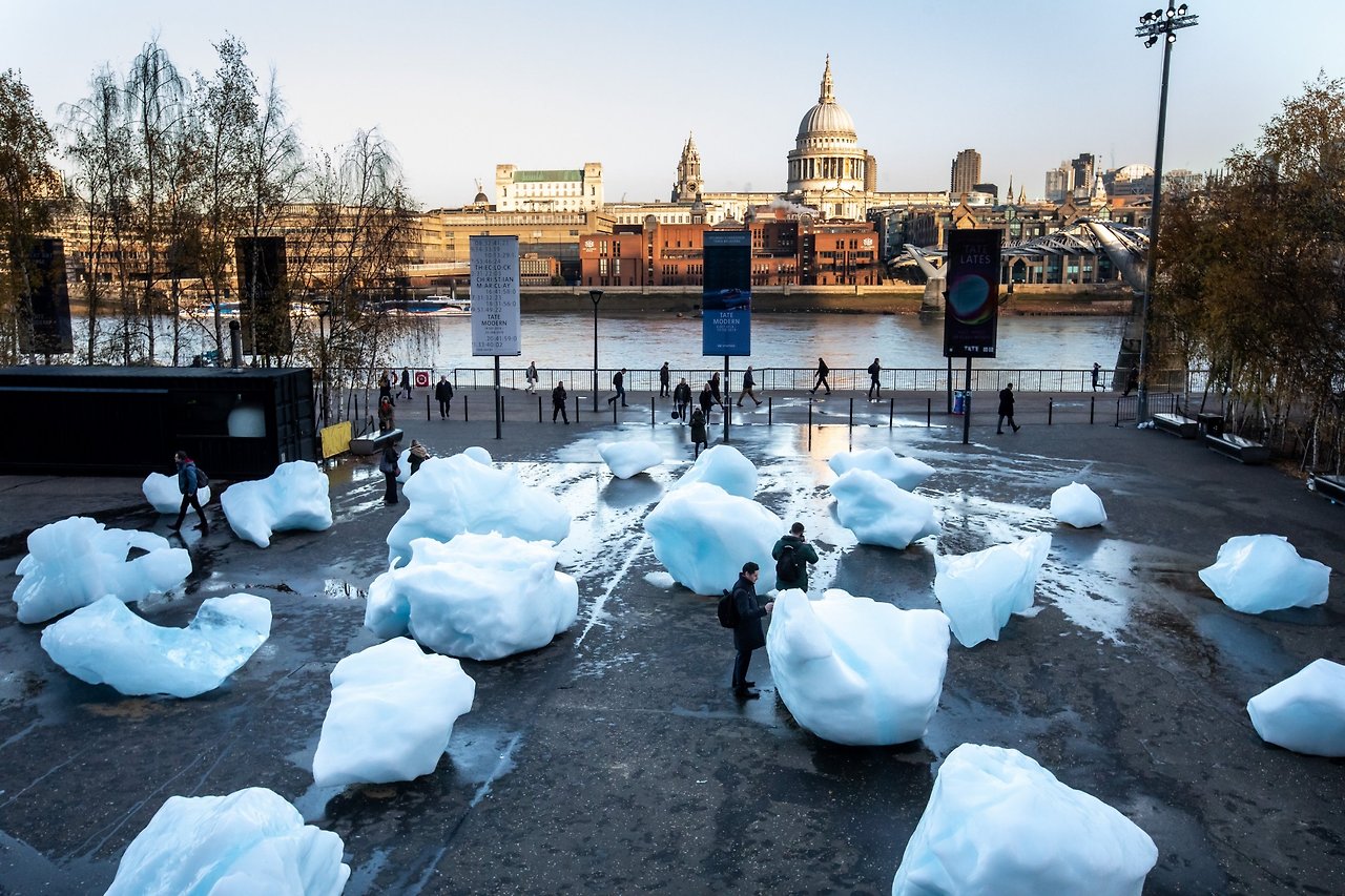 2018년 12월 런던 테이트 모던 뱅크사이드 앞마당에 24조각의 거대한 얼음 조각이 나타났다. 올라퍼 엘리아슨가 그린란드 주변 바다의 빙하를 런던 한복판에 옮겨다 놓은 것이다.