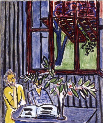 마티스(Henri Matisse)의 강렬한 원색을 대담하게 대조시켜 사용하기로 유명하다. 그는 랑스 남동부 지중해 해안지역인 니스(nice)와 방스(vence)에 머무르며 집 안에서 바라보는 바다풍경에 주목하였다. 위의 그림은 그의 유작으로 남은 방스 인테리어(Inteior of Vence) 연작 중 하나이다. 사람들의 움직임을 그려 넣지않고 모든 사물에 푸른색 색조를 사용하여 일종의 생동감 부여하고있다.