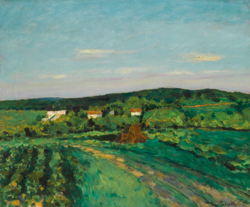 이고르 그라바(Igor Grabar)의 <여름저녁>은 아직 해가 중천에 떠 있는 듯 싶다. 그라바는 러시아 화가로 1923년 늦여름과 가을사이 모스크바 시골의 풍경을 그렸다. 안료를 짙게 사용하여 짙푸른 여름날을 입체감있게 표현하였다. 낮은 수평선 따라 녹색 빛깔의 푸르름이 펼쳐진다. 다소 답답해보일만큼 덮여있는 수풀은 더운 여름을 잘 나타낸다.