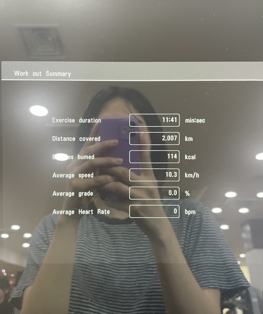 러닝머신 : 11min/2km - 평균속도 10.3km/h