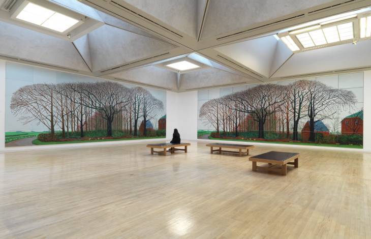 2007년작 '와터근처의 더 큰나무들 또는 새로운 포스트-사진 시대를 위한 야외에서 그린 회화(Bigger Trees Near Warter Or/Ou Peinture Sur Le Motif Pour Le Nouvel Age Post-Photographique): 50개의 캔버스를 조합한 가로 12m, 세로 4.5m의 대규모 작품. 그의 고향 요크셔의 풍경을 감상해보자.