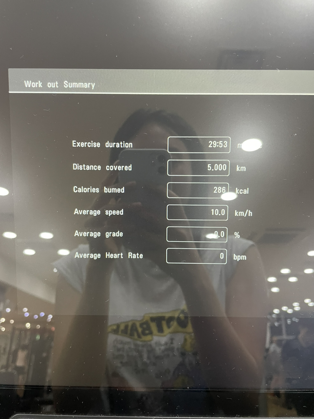 러닝머신 : 5km / 30min - 평균속도 10km/h