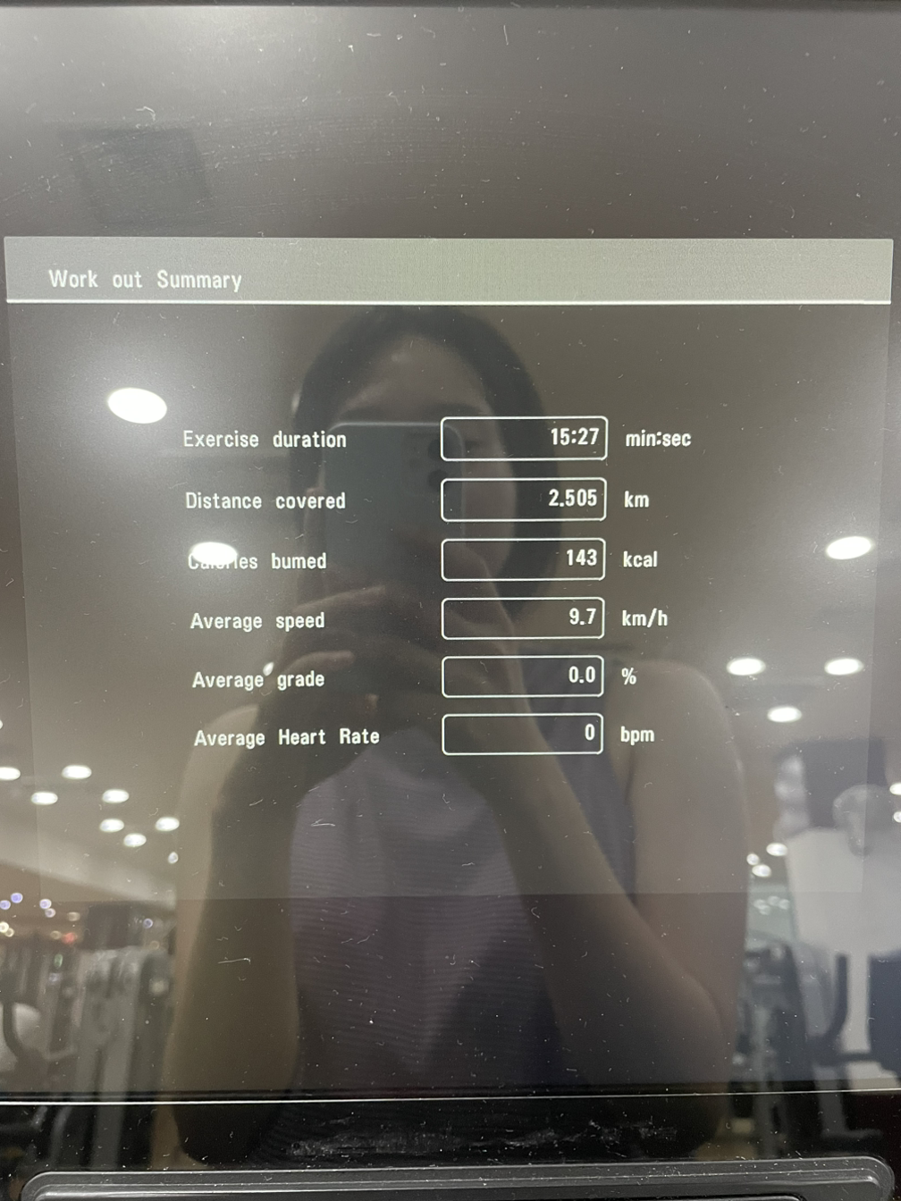 러닝머신 : 2.5km / 15min - 평균속도 9.7km/h