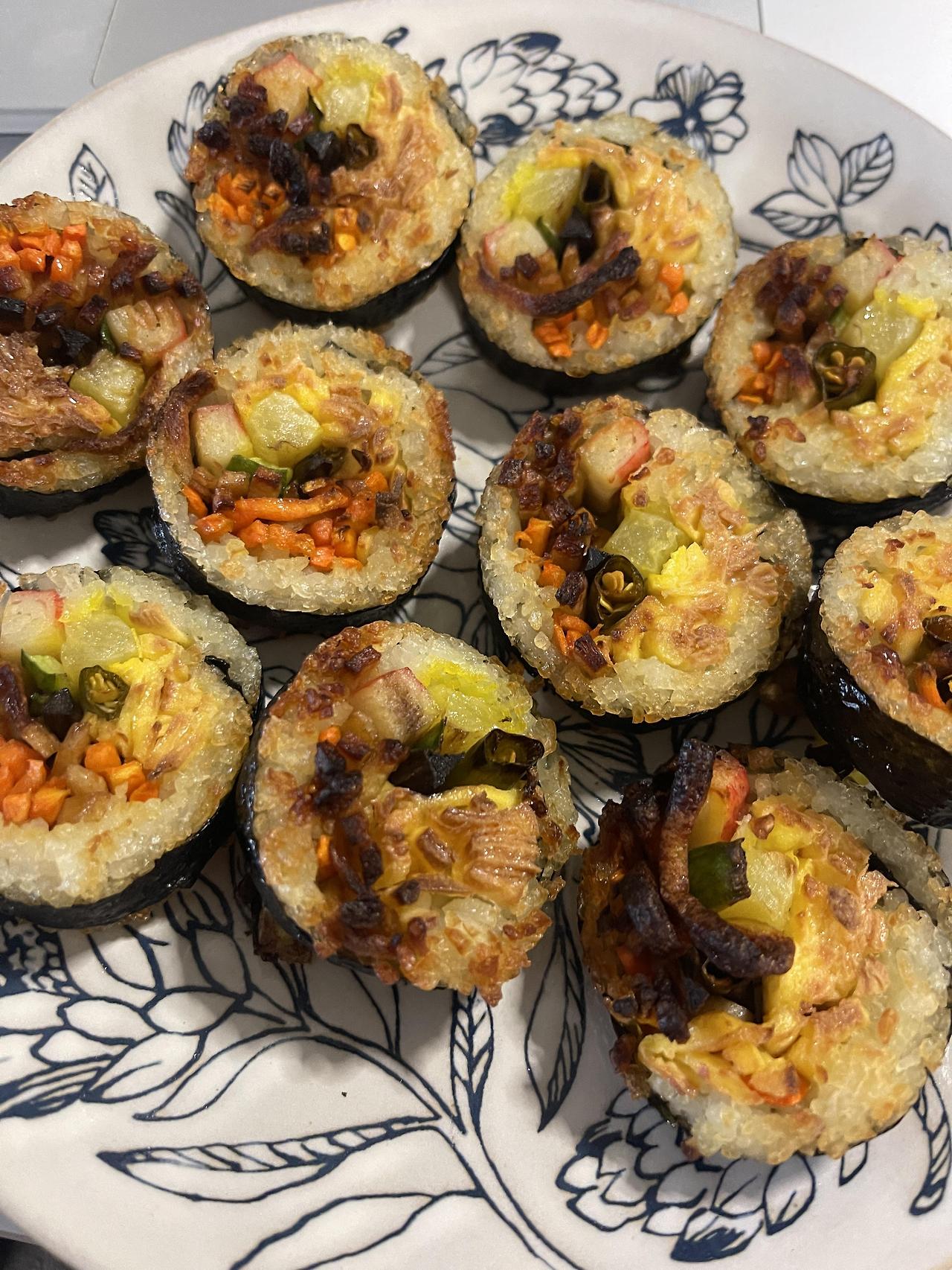 냉장고에 있던 김밥도 구워서 먹고.. 요즘 식단관리 꽝이다.