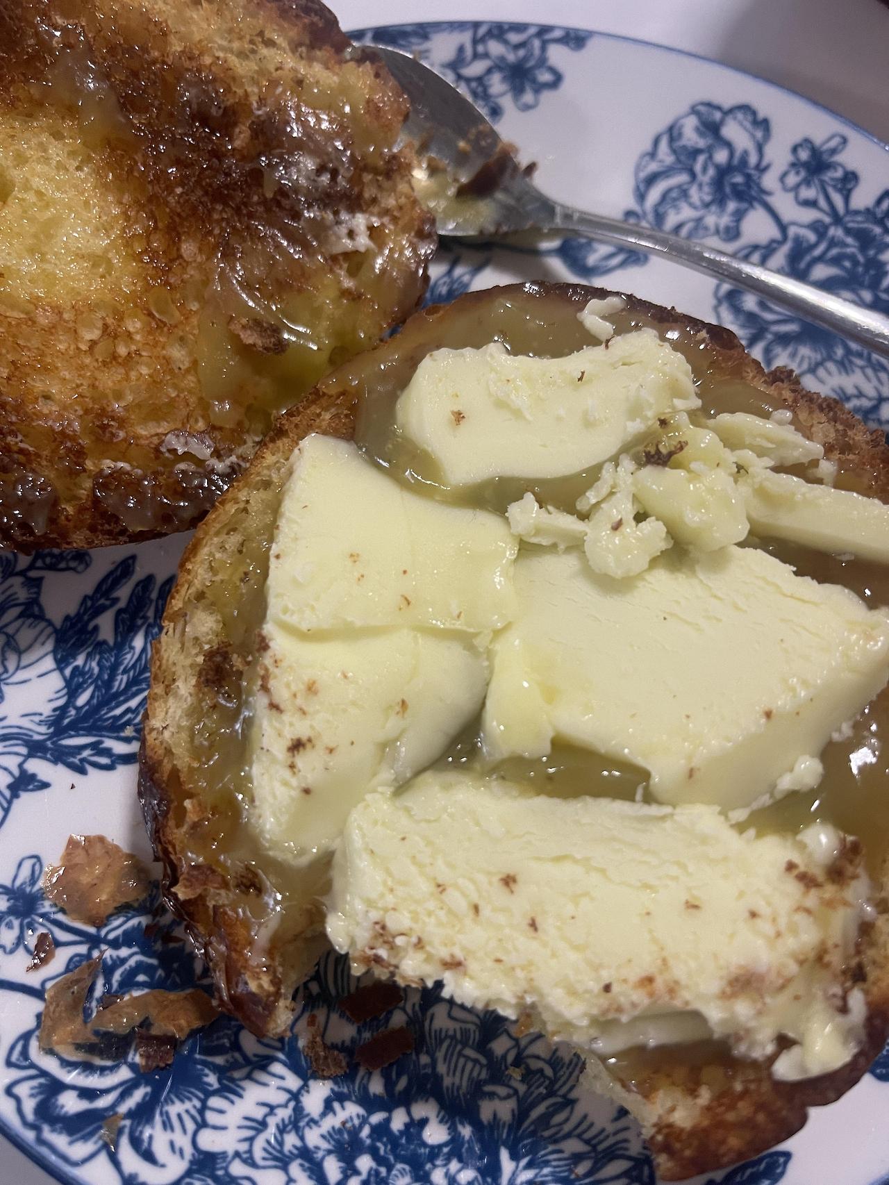 친구가 싱가포르에서 사다준 야쿤 카야 버터를 브리오슈 번에 발라서 버터랑 먹었다.