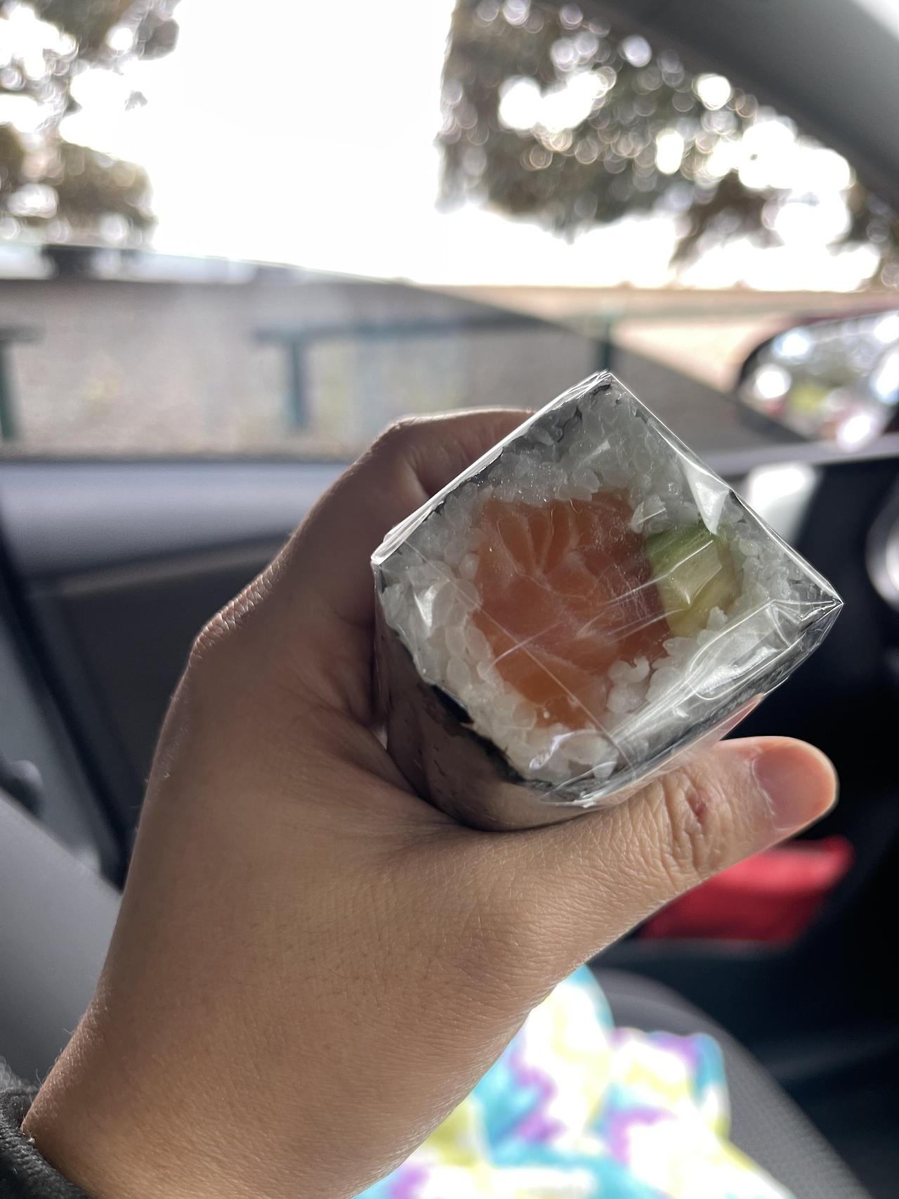 스튜디오에 갔다가 우울한 날, 차 안에서 혼자 초밥을 점심으로 먹었다.