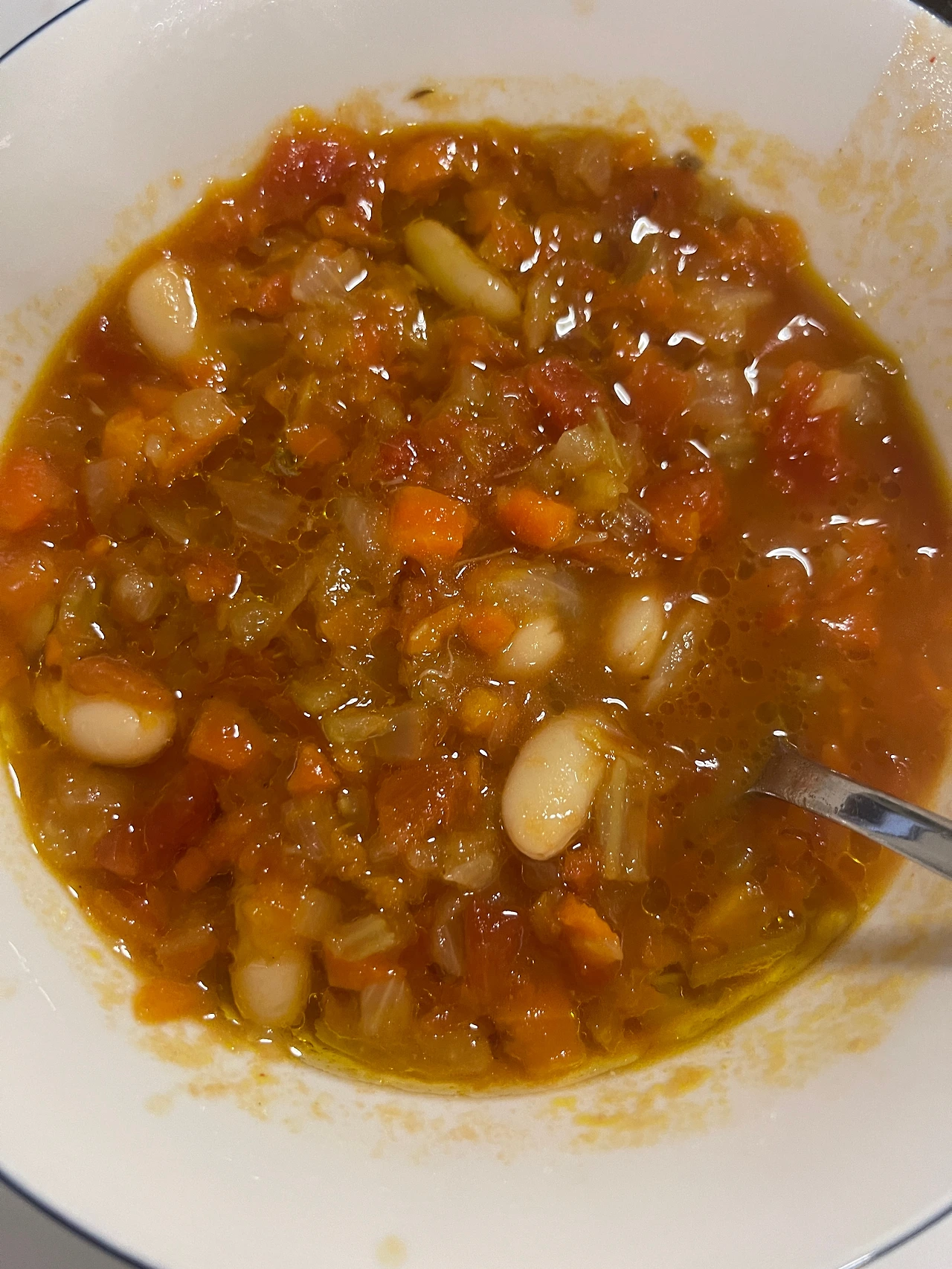 거기다가 카펠리니(하얀색 콩, 내가 제일 좋아하는 콩.. 너무 맛있다.) 캔을 한통 넣어준다. 폭 끓인 후에 접시에 담아서 올리브 오일 한 바퀴 빙 둘러준 후에 먹으면 완전 힐링이다.