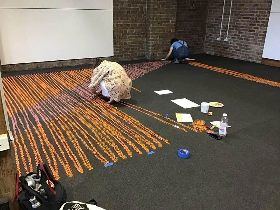 작년에 필자는 이렇게 창밖 배경이 아름다웠던 울루물루(Wooloomooloo, 호주 원주민어로 어린 캥거루라는 뜻)의 스튜디오에서 로쉘 헤일리(Rochelle haley)라는 예쁜 교수님의 작업을 도운 적이 있다. 하루 종일 쭈그리고 앉아서 비즈로 저런 작품을 만드는 일을 했다.