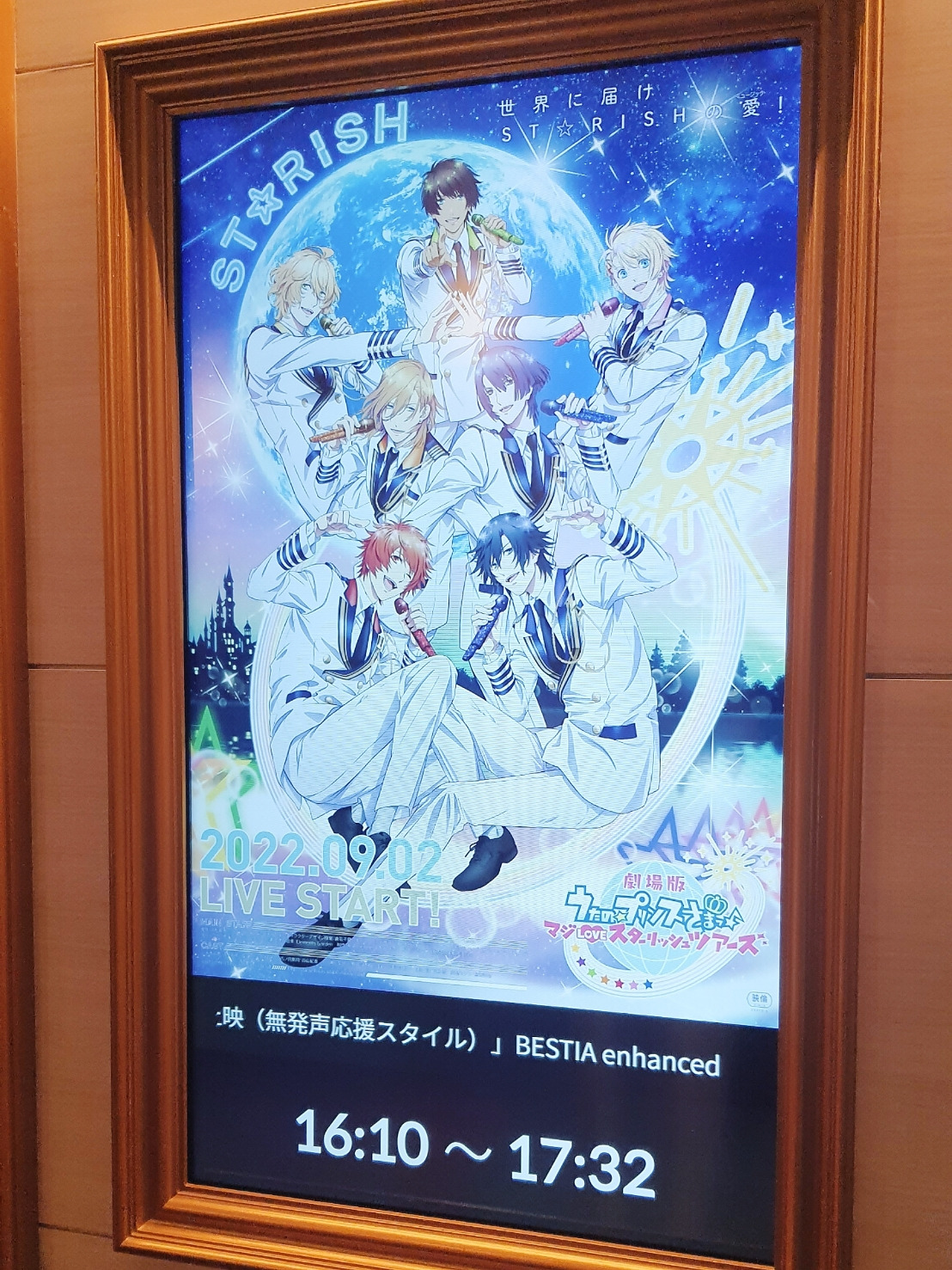 정확히는「노래하는 왕자님 (이하 우타프리로 표기)」 시리즈의 최신 극장판을 보고 왔다. (일본어 정식 타이틀은「劇場版 うたの☆プリンスさまっ♪マジLOVEスターリッシュツアーズ (극장판 노래하는 왕자님 진심 LOVE 스타리쉬 투어즈, 이하 스타리쉬 투어즈로 표기)」)