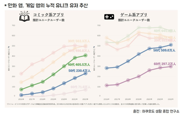 실제 만화, 게임, 음악 등의 콘텐츠 소비 시장에 있어, 연령의 벽이 점점 사라지고 있다는 일본의 조사 결과가 있어 관련 내용을 인용해보려 한다.