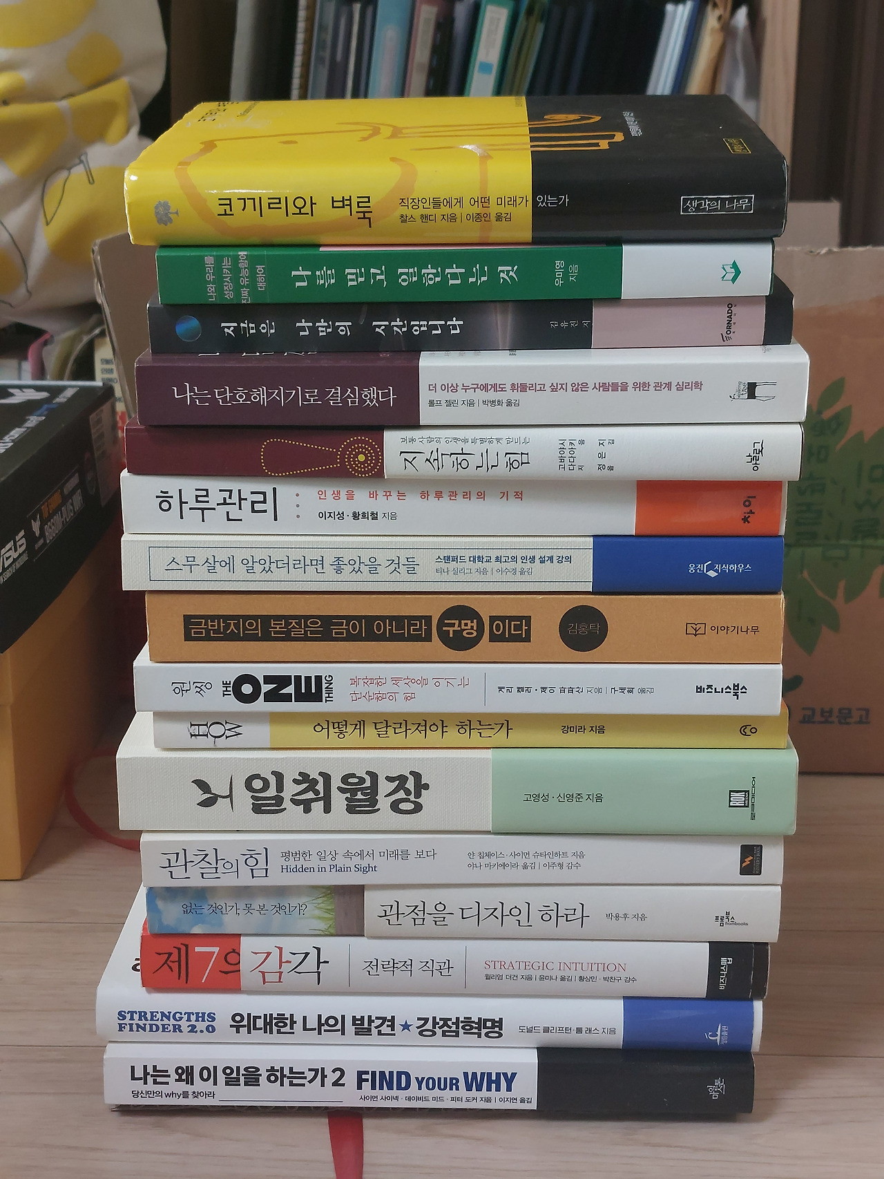 20대의 나를 성장시켜 준 책들. 오랫동안 책장의 수호자로 존재하다 최근 놓아주었다.