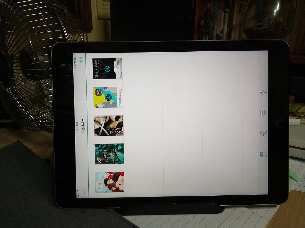 웃긴 것은 막상 메인 UI 에서는 세로 모드만 지원하다가, 글을 쓰거나 책을 읽으려고 들어가면 가로 모드가 지원된다는 것. 일단 목을 꺽어서 풀어주고 다시 글을 쓰거나 책을 읽으라는 세심한 배려인지는 모르겠지만, 하나 둘도 아니고 상당히 많은 한국에서 제작된 앱들이 이 모양이다. 스마트폰용 앱을 그냥 확대만 해놓은 느낌이랄까.