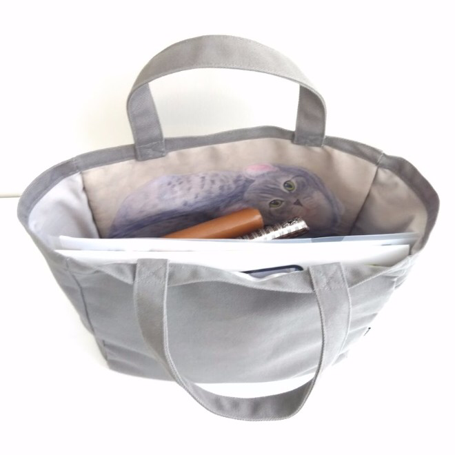 이번인 재미있는 토트백이 하나 나왔다. 고양이와 눈 맞춤하는 토트백이다. 겉에 고양이 눈이 그려지거나 그런 것은 아니고, 토트백 안쪽 커버에 고양이가 들어간 일러스트를 그려넣었다. 그런데 이 일러스트가 참, 귀엽다. 뭐, 일단 고양이가 가방을 좋아한다는 것을, 우린, 알고 있으니까.