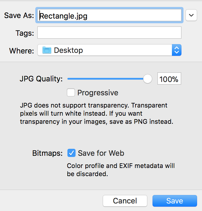 Save for web을 체크하면 Color profile과 EXIF metadata가 삭제된 상태로 저장됩니다. Color profile은 다양한 포맷에 사용될 수 있도록 컬러 값을 만들어 주는 것을 말하고, EXIF metadata는 디지털카메라에 쓰이는 이미지 파일 포맷을 말합니다.