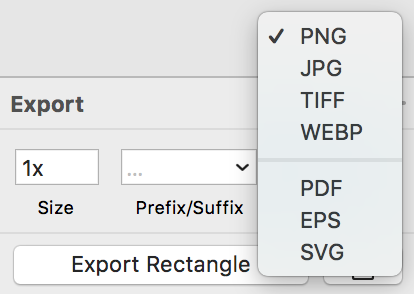 스케치의 Export 기능을 보면 PNG, JPG, TIFF, WEBP, PDF, EPS, SVG 이렇게 총 7가지의 포맷을 지원합니다. 이 포맷에 대해서 한번 알아보겠습니다.