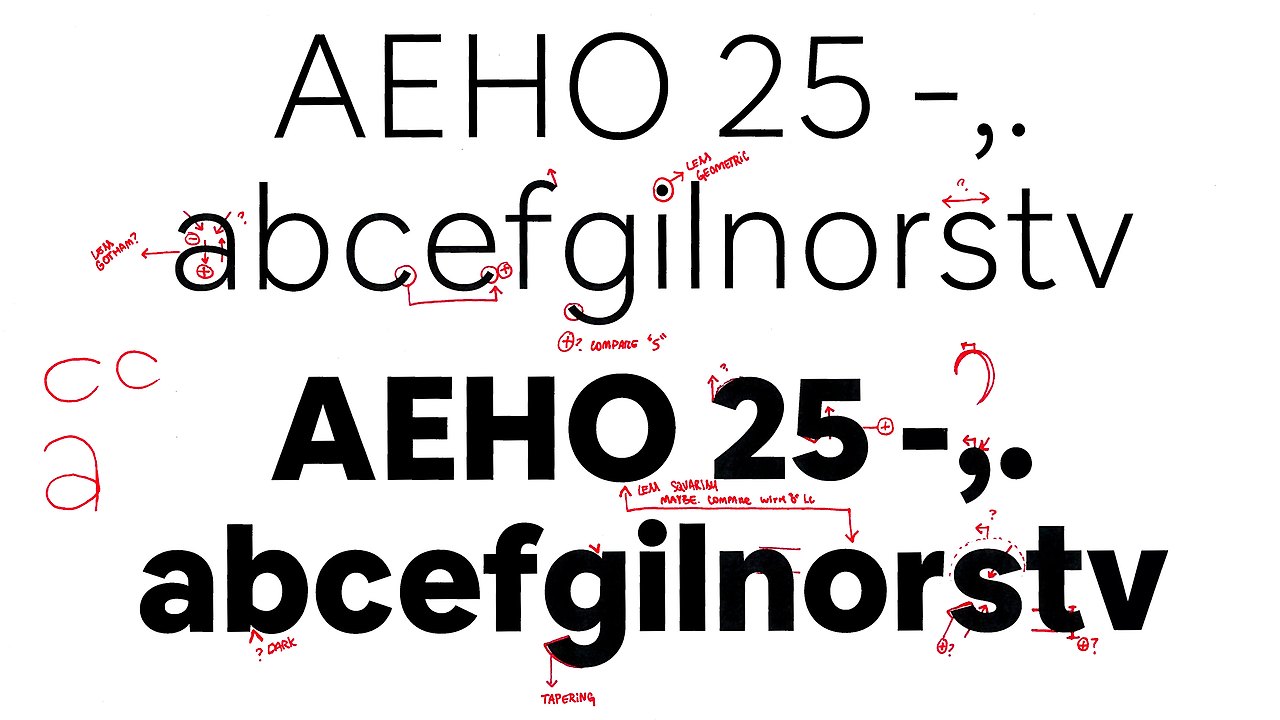 Karri Saarinen : 폰트의 가독성을 좋게 만드는 요소가 많습니다. 우리는 가독성 표준을 충족시키기 위해 많은 요소를 고려했습니다. 다른 형태를 만들었지만 기존의 폰트와 비슷하게 보이게 만들기 위해서 틈 (위 이미지에서 보이는 빨간 원)을 확장시켰습니다. 우리는 또한 소문자의 가독성을 좋게 만들기 위해서 x-height (위 이미지에서 보이는 소문자 몸통 부분)을 늘렸습니다. 폰트가 매우 작거나 얇은 경우 거의 안보이기 때문에 크기와 두께의 균형을 맞추기 위해 노력했습니다.