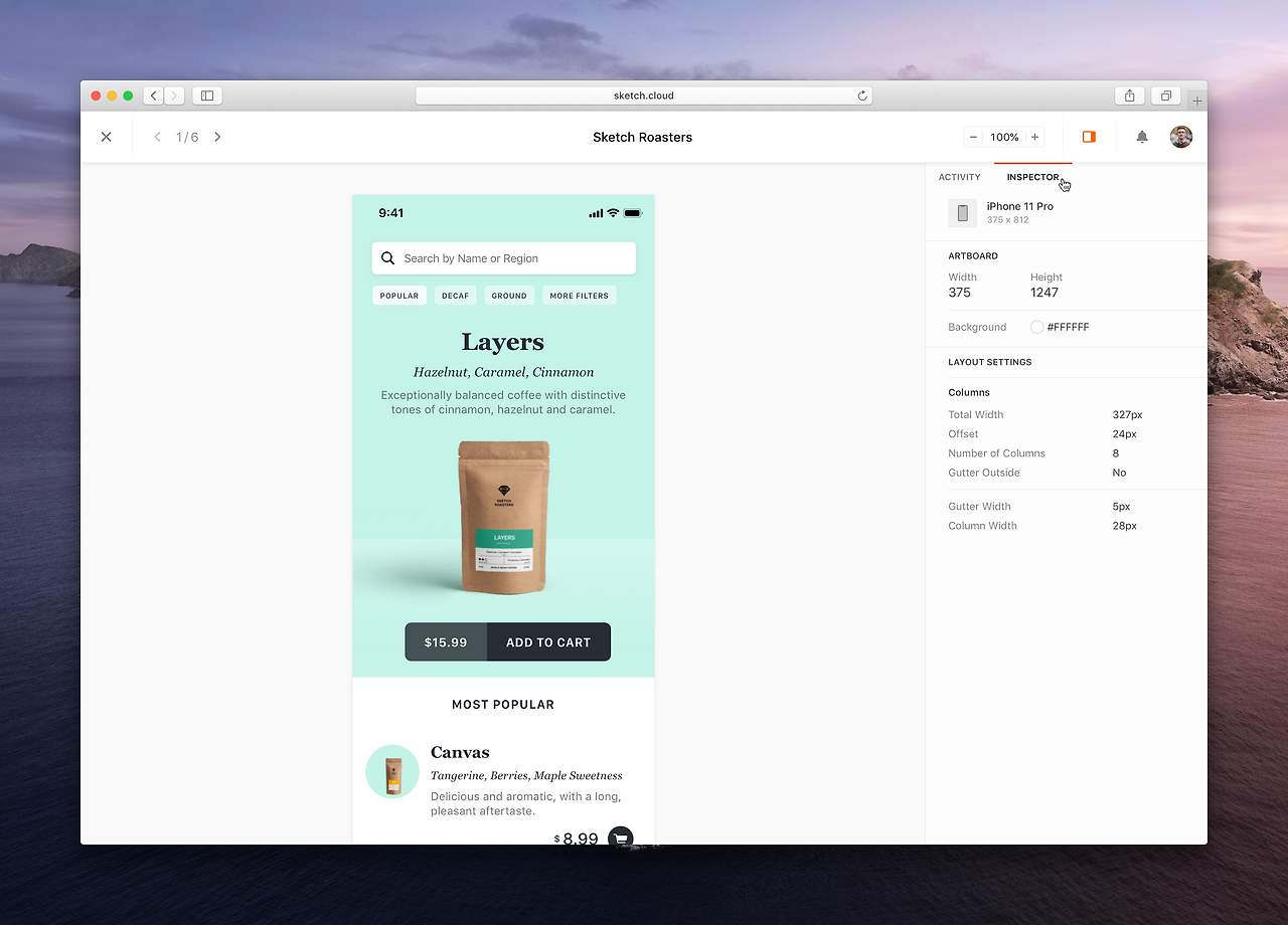 스케치 2020 티저 비디오에서 언급한 개발자 Handoff(전달) 기능이 출시되었습니다. Handoff 기능은 이전에 Zeplin에서 확인할 수 있던 수치를 재는 기능과 같습니다. 작업자가 Zeplin에 업로드하던 것을 Sketch Cloud에 업로드하면 개발자를 비롯한 다른 팀원이 해당 링크를 통해 결과물을 확인하게 되는 거죠.
